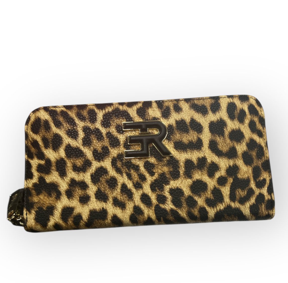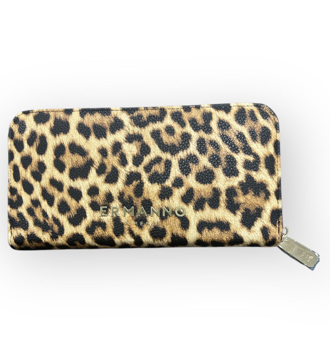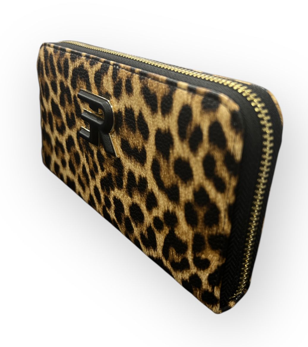 portafoglio ermanno scervino realizzato in ecopelle martellata con stampa leopardata apertura con zip vari scomparti interni per riporre carte, documenti...