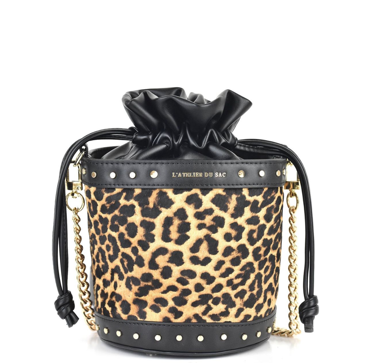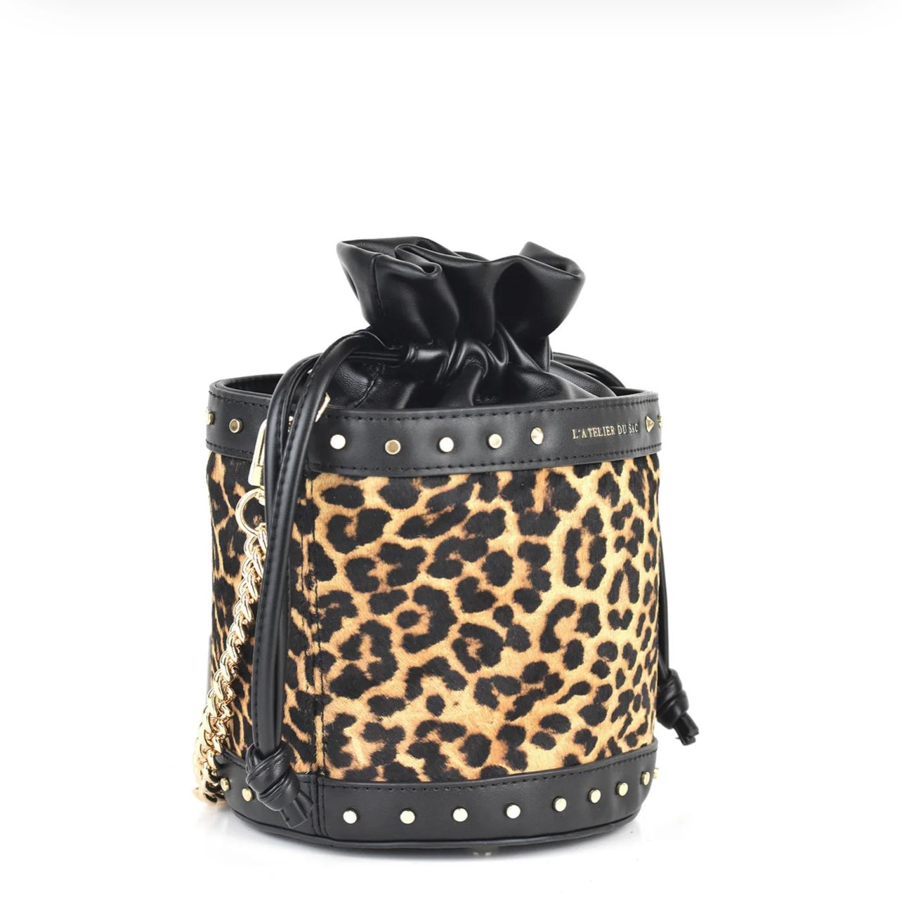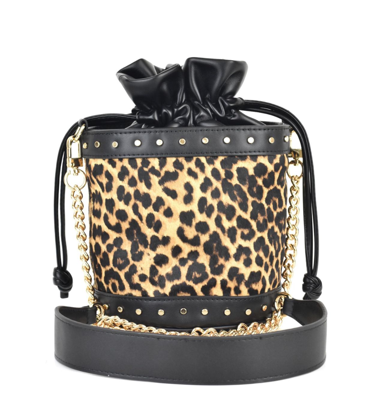Fantasia leopardata e borchie piatte applicate.