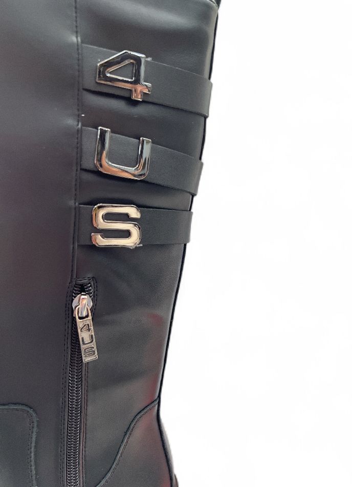 sul lato esterno campeggiano delle fasce applicate con grandi lettere metalliche che compongono la scritta ''4us''