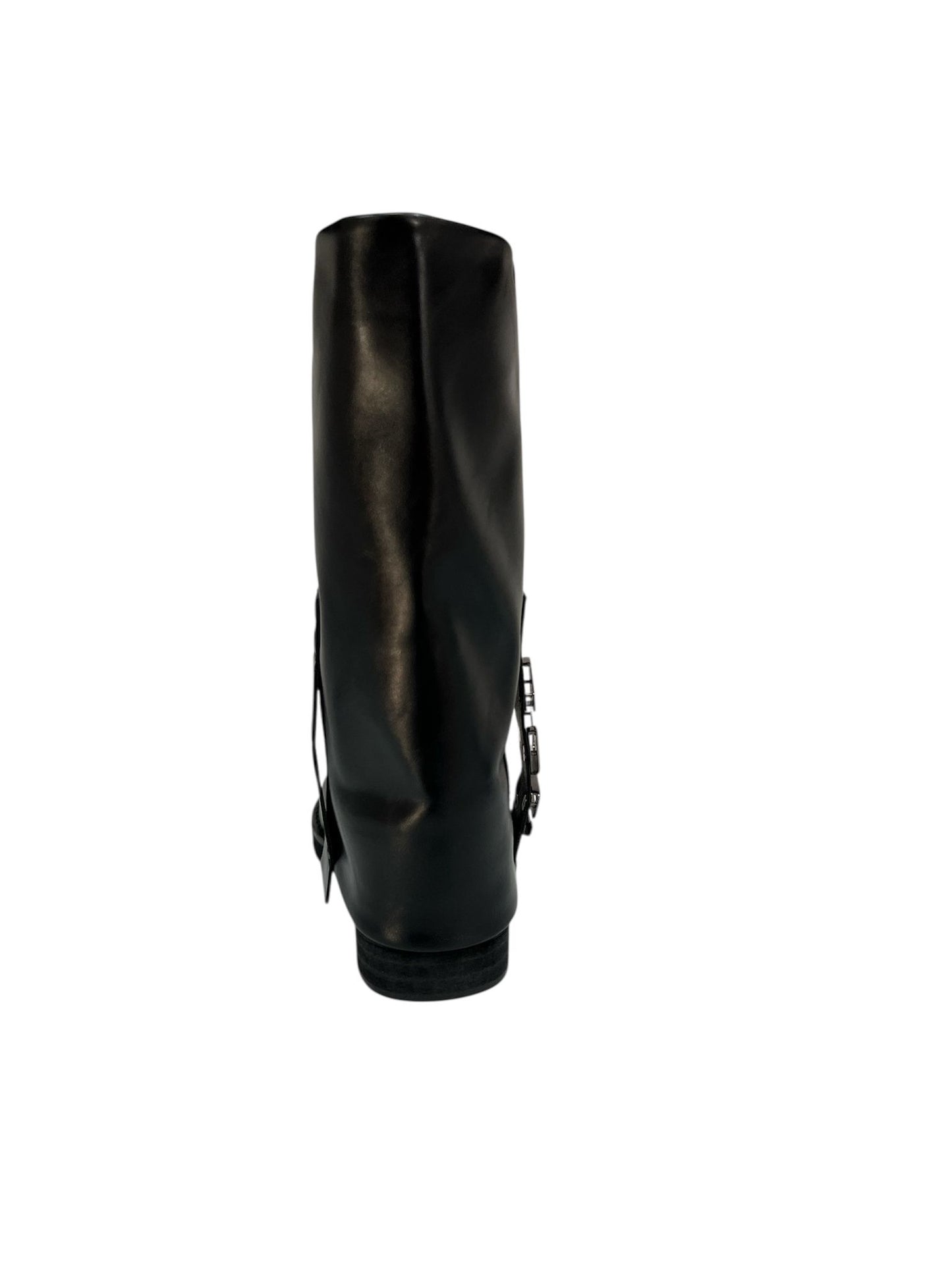stivale cesare paciotti in pelle nera con superficie liscia e morbida.sul lato esterno è presente una fascia verticale cucita ,...