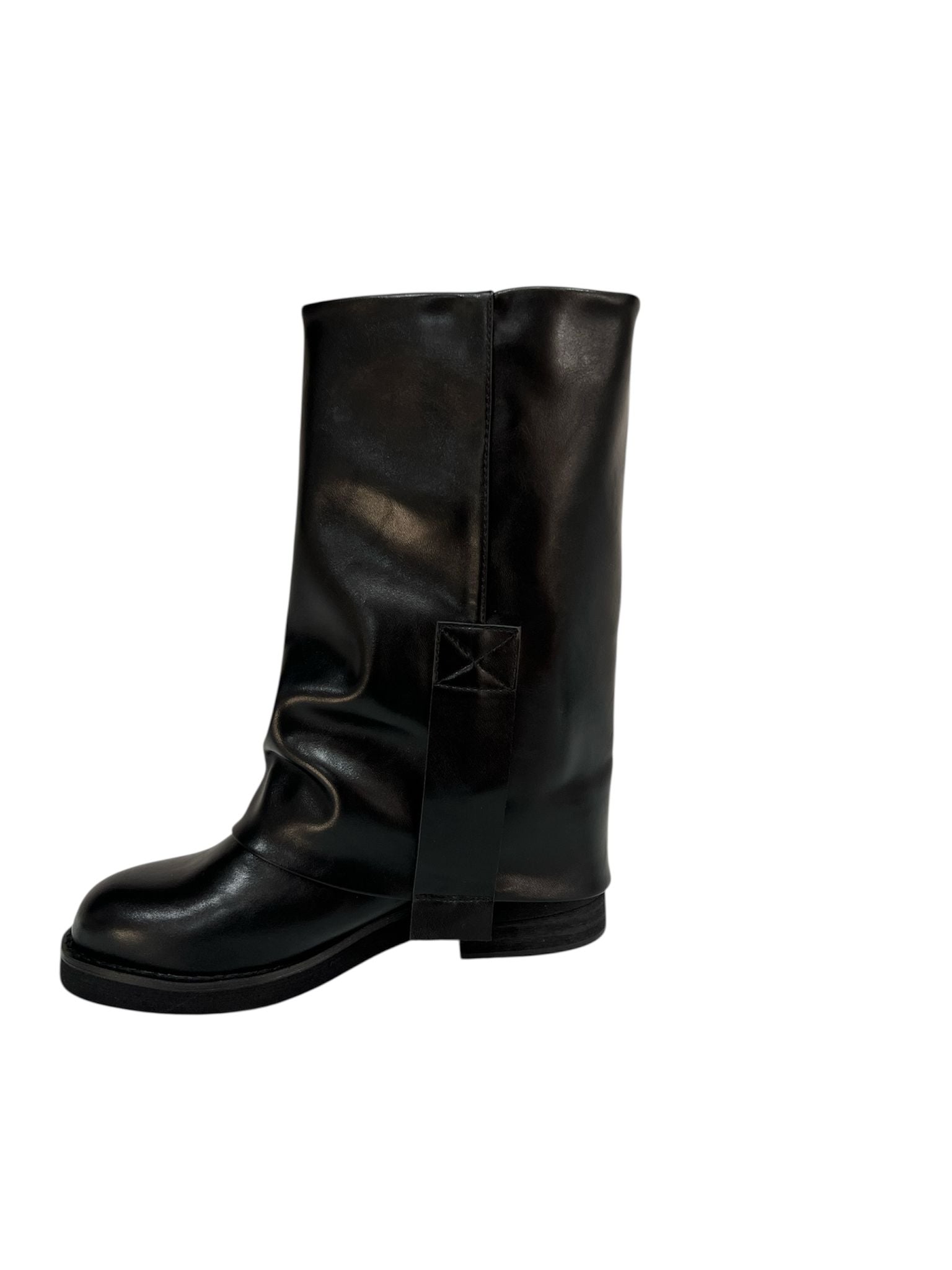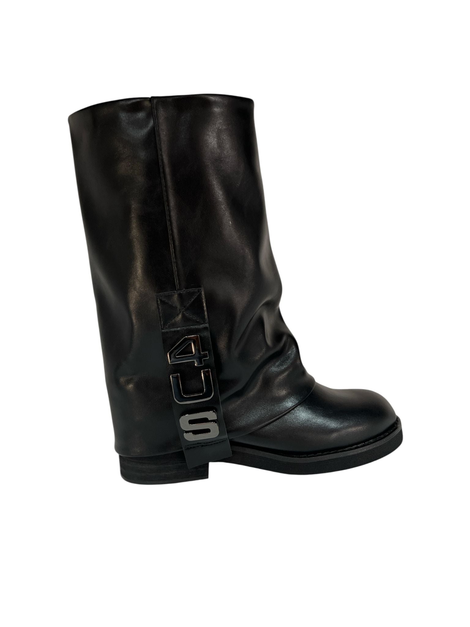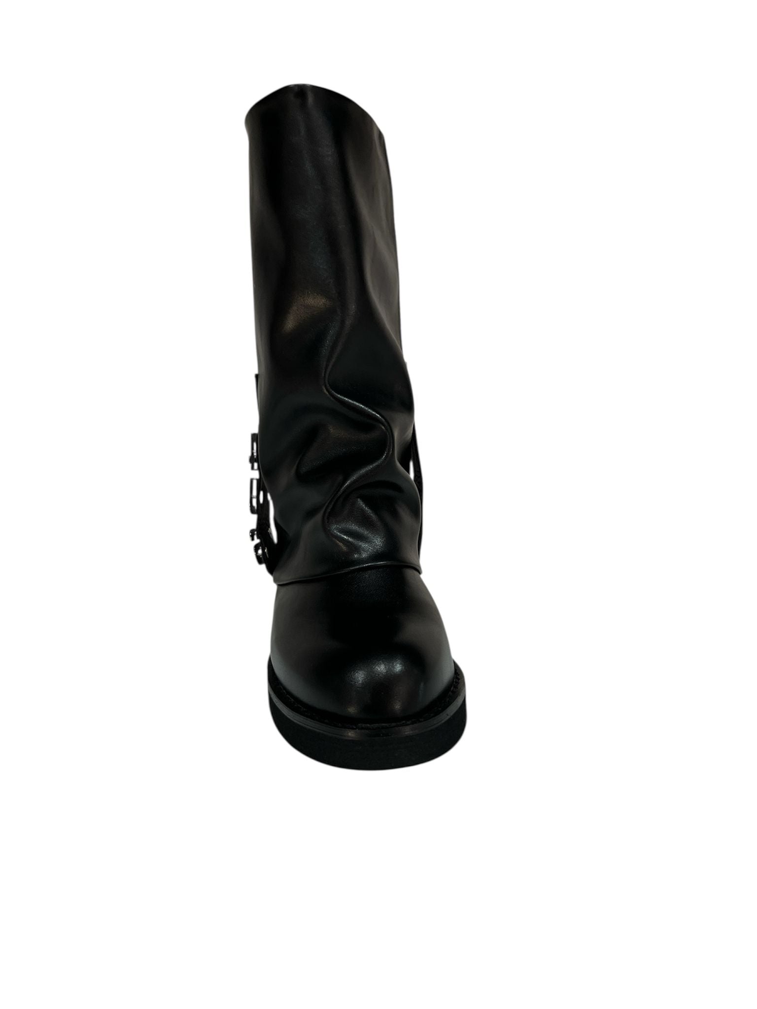 stivale cesare paciotti in pelle nera con superficie liscia e morbida.
