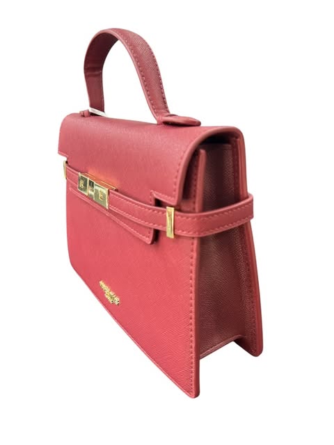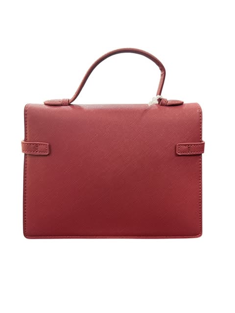 Questa borsa è di forma rettangolare e compatta, con un design elegante e strutturato. È realizzata in materiale effetto saffiano (con la tipica texture a righe incrociate)