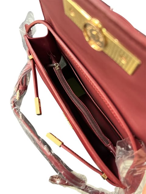 • Chiusura: presenta una patta frontale con un dettaglio metallico dorato a girello, che richiama lo stile delle borse di lusso.