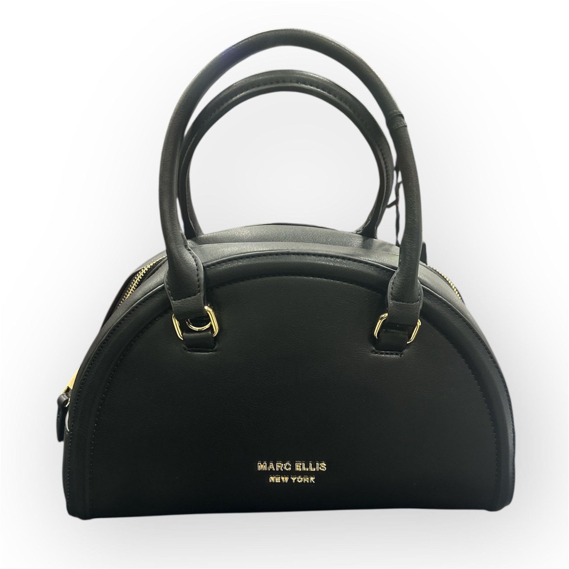Borsa nera marc ellis dal design moderno e ricercato, caratterizzato da una silhouette arrotondata e una struttura compatta ma capiente. realizzata in ecopelle , presenta doppi manici per un'elegante portabilità a mano. e una tracolla logata regolabile e removibile che aggiunge un tocco sport-chic. la chiusura superiore con zip garantisce praticità e sicurezza.