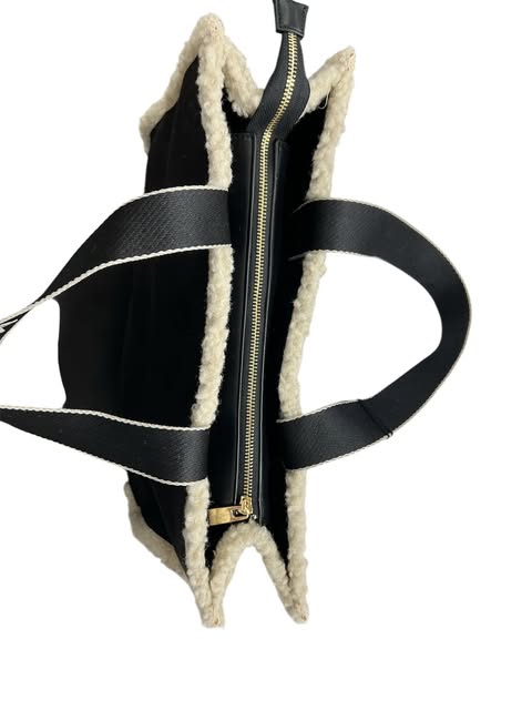 Materiale: il corpo della borsa è in tessuto , con contorni rifiniti da un bordo in pelliccia/tessuto shearling color panna che le conferisce un look caldo e invernale.