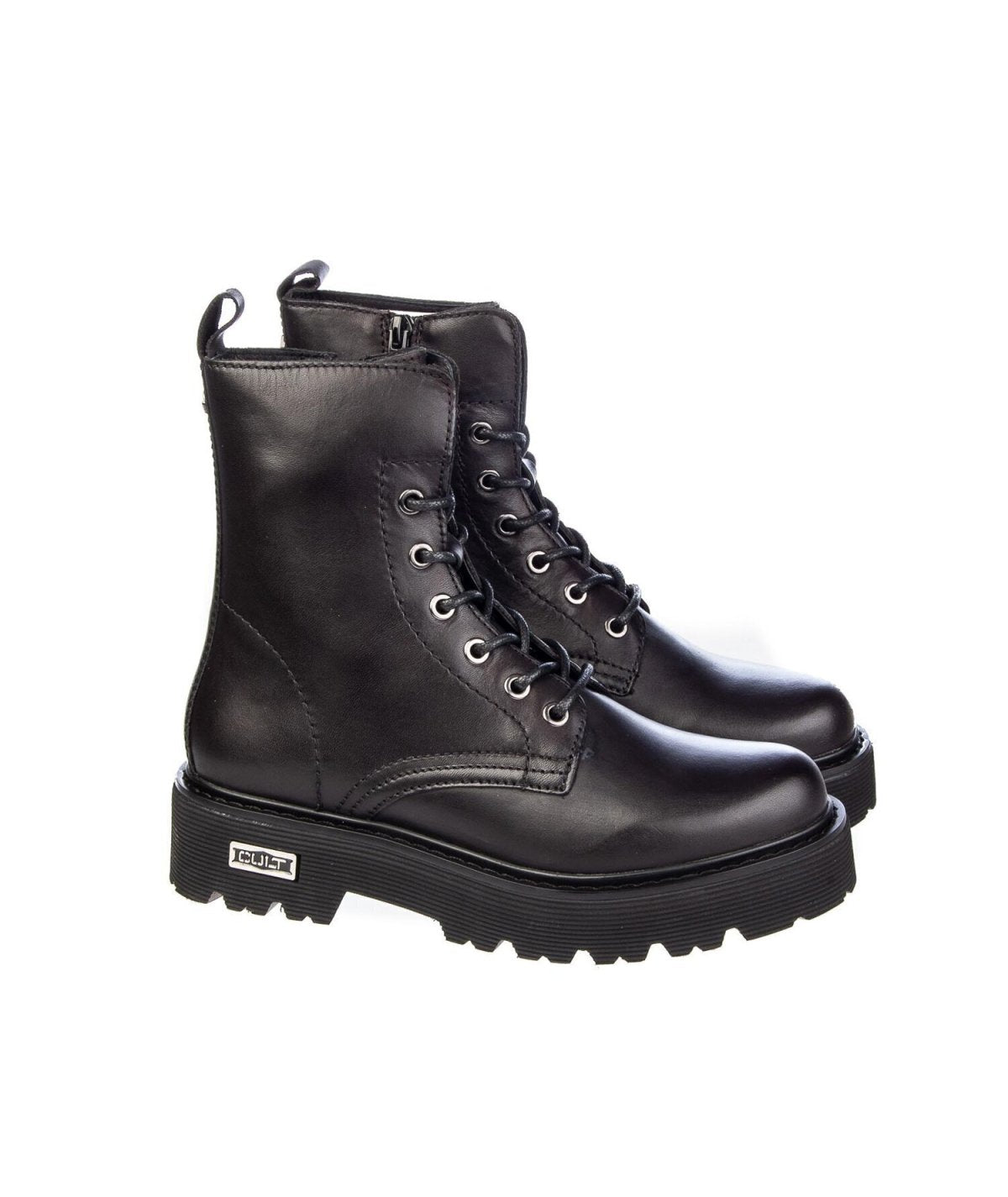 • Suola: Platform carrarmato in gomma nera, stabile e robusta, con dettaglio logo Cult laterale.
