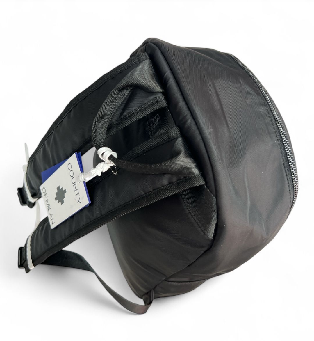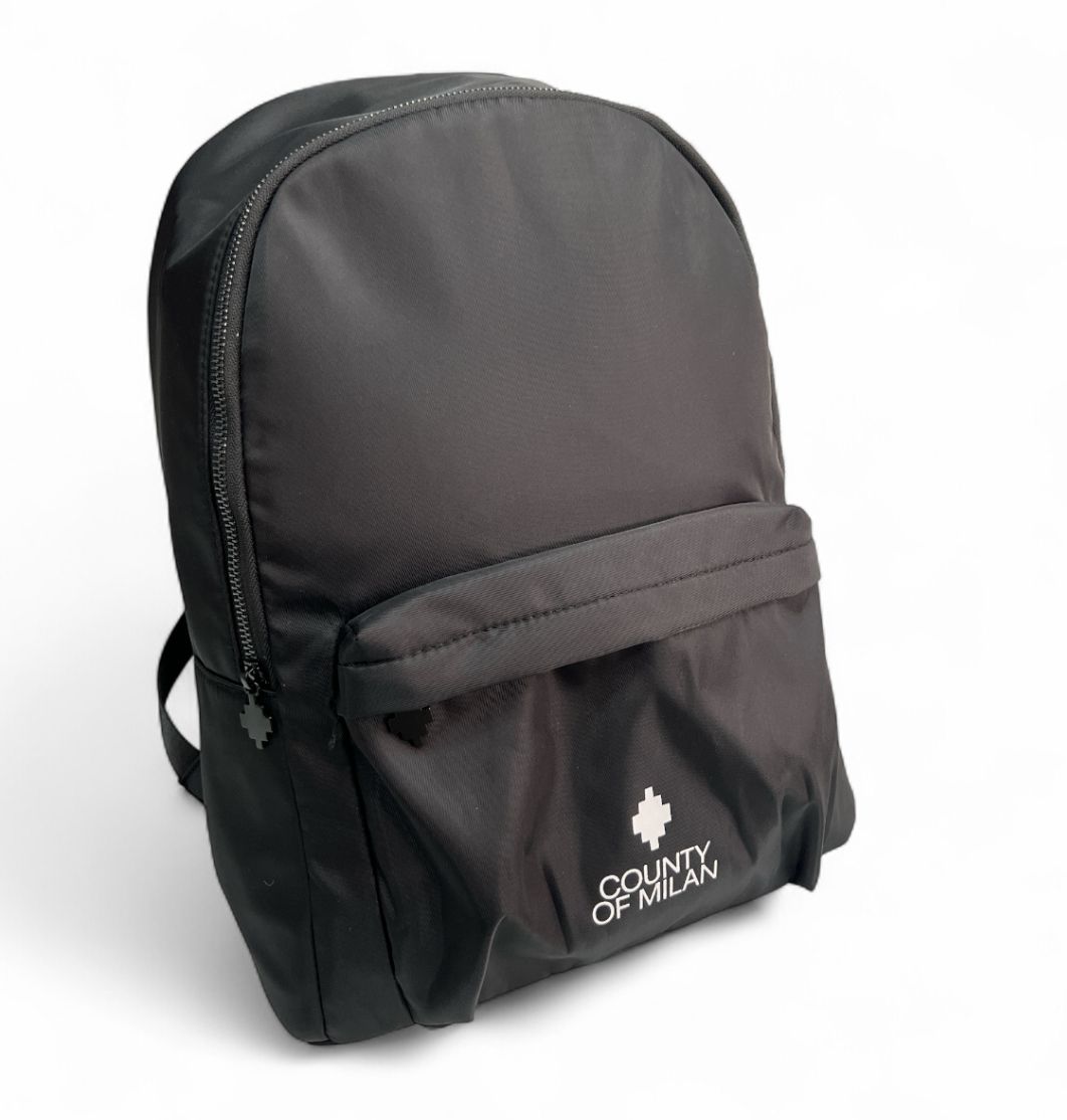 Zaino marcelo burlon in nylon quindi idrorepellente unisex adatto sia per uomini che per donne.