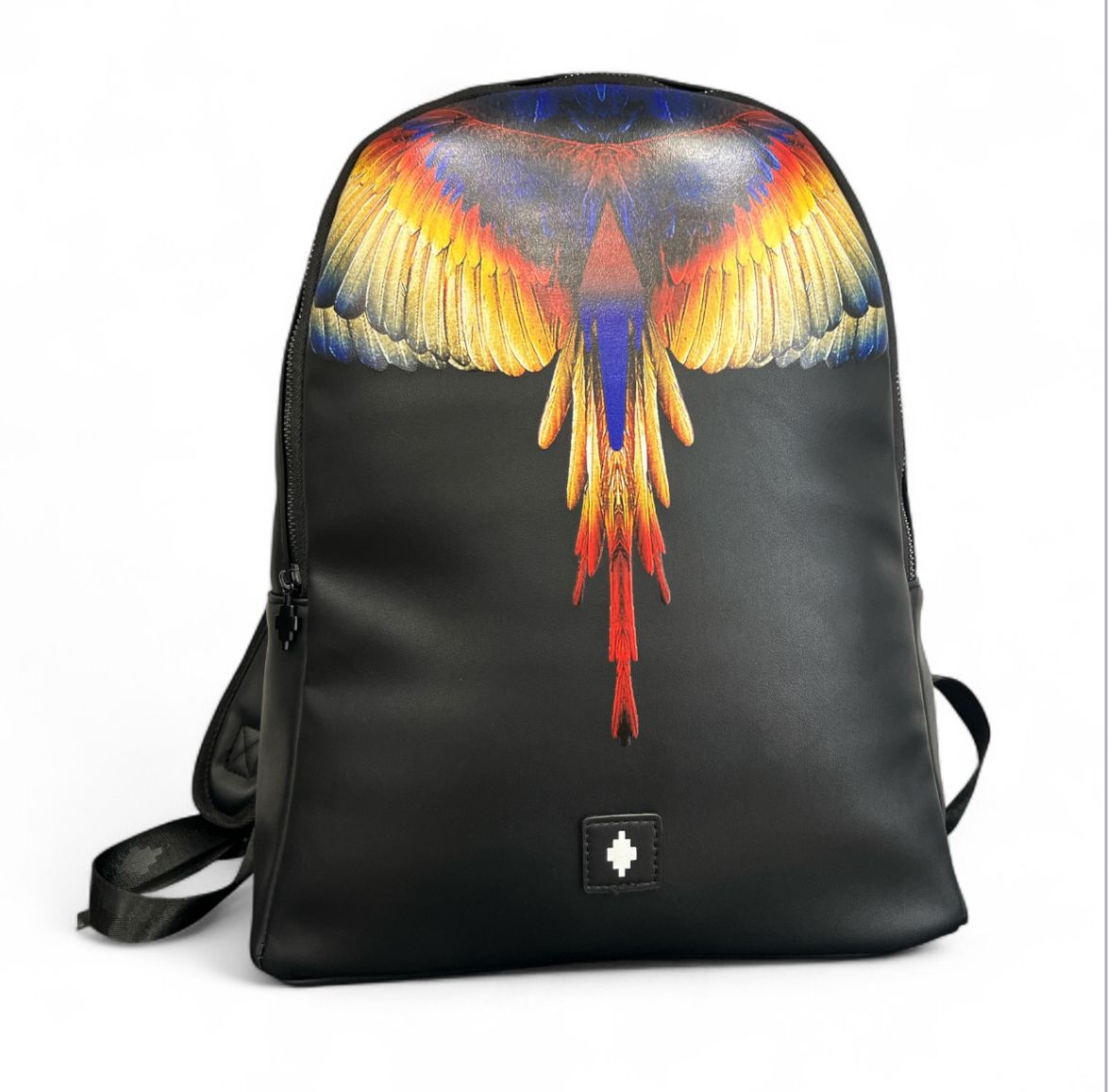 Zaino marcelo burlon in pelle con una zip principale nera molto capiente perfetto per lavoro e per scuola