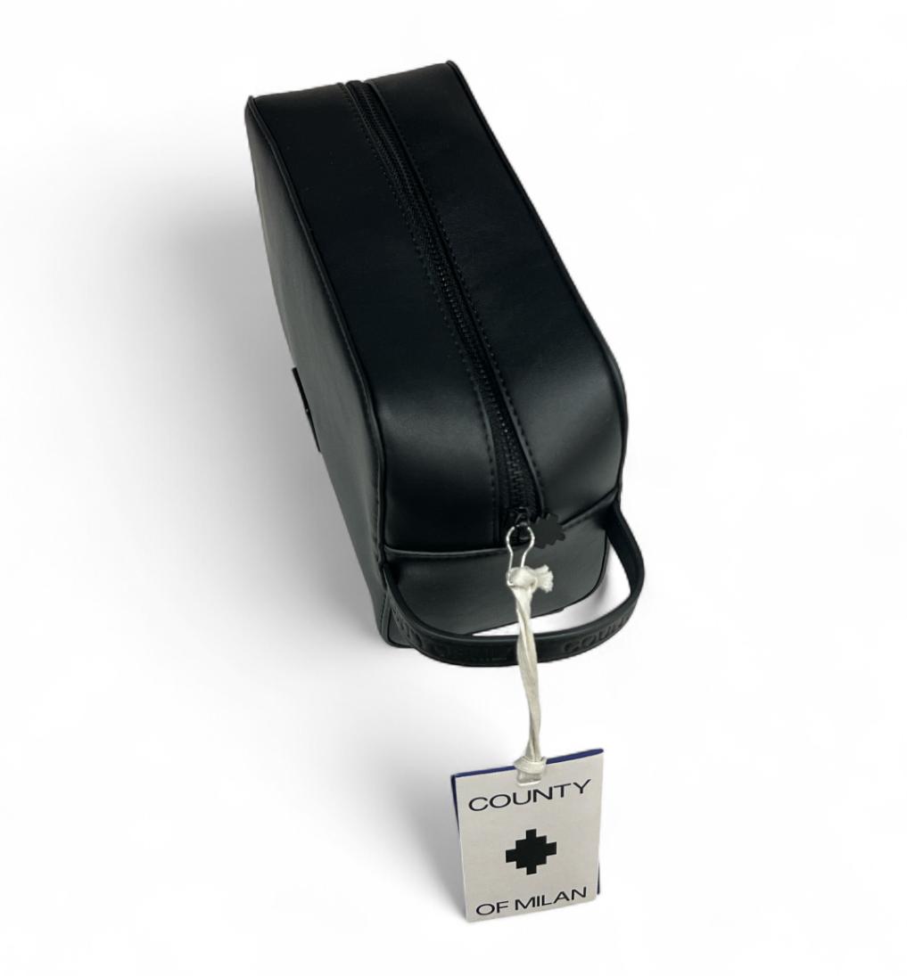 Borsello marcelo burlon in ecopelle nero apertura con zip nera molto capiente all'interno nella parte frontale troviamo lo stemma iconico...