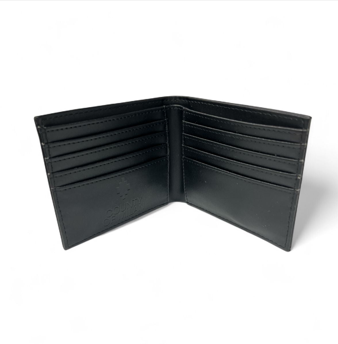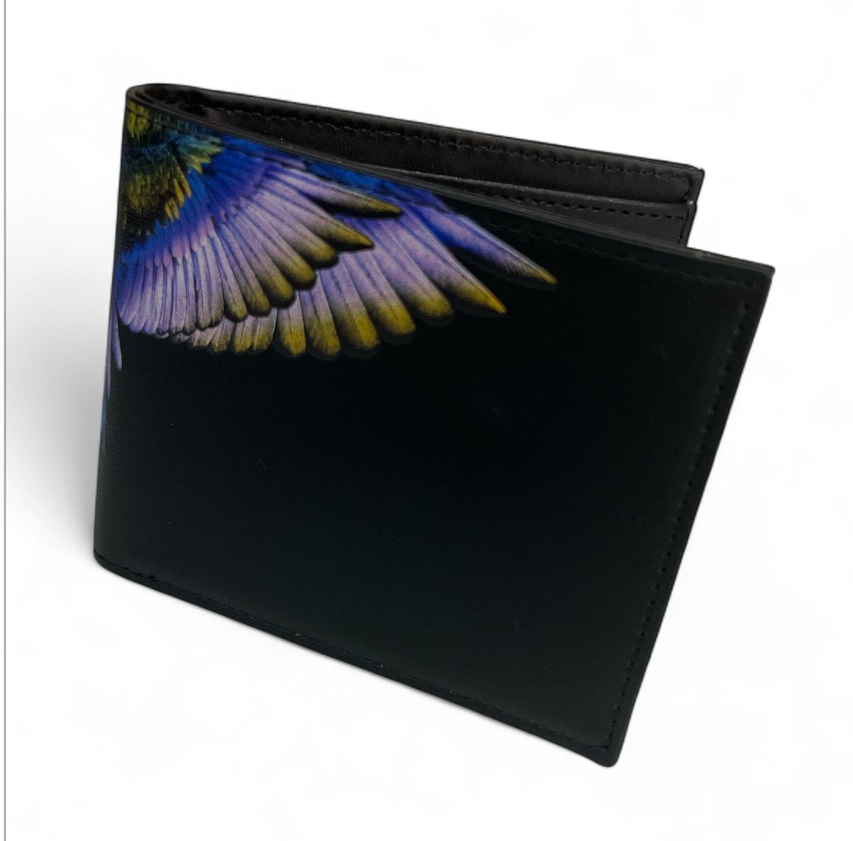 portafoglio marcelo burlon in ecopelle nero iconico per la stampa con ali di uccello.
