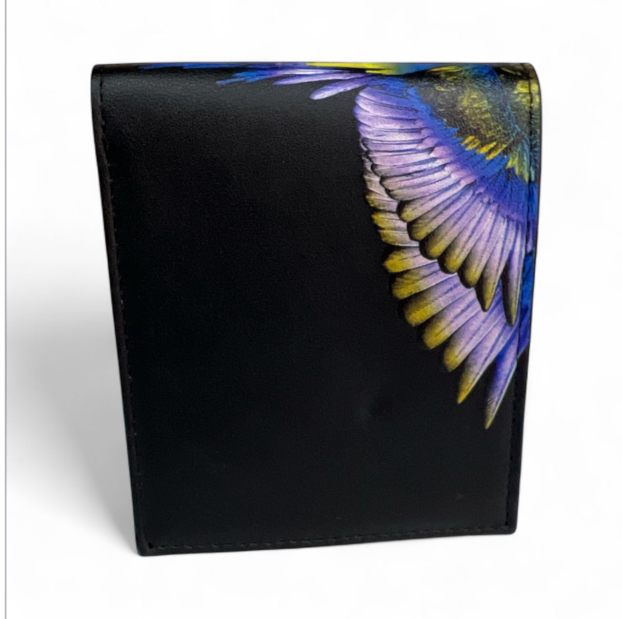 portafoglio marcelo burlon in ecopelle nero iconico per la stampa con ali di uccello.il design mostra un'apertura alare simmetrica e...
