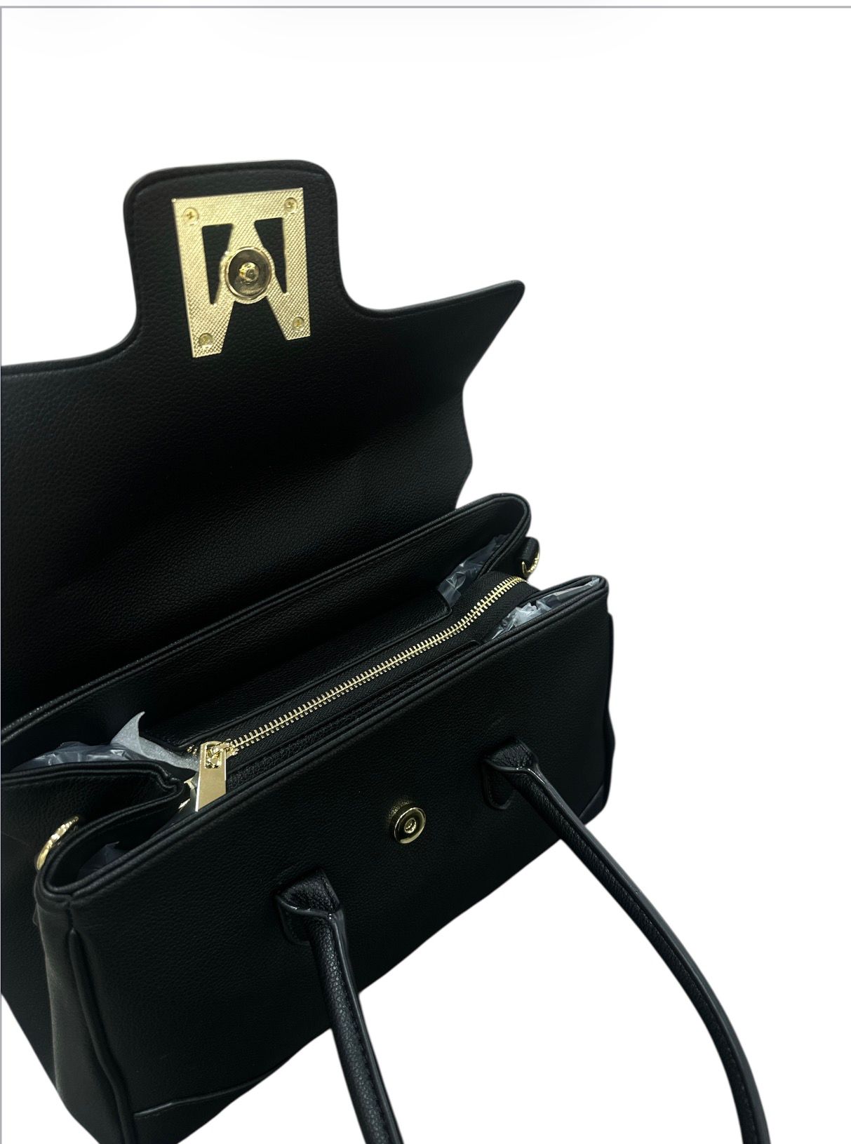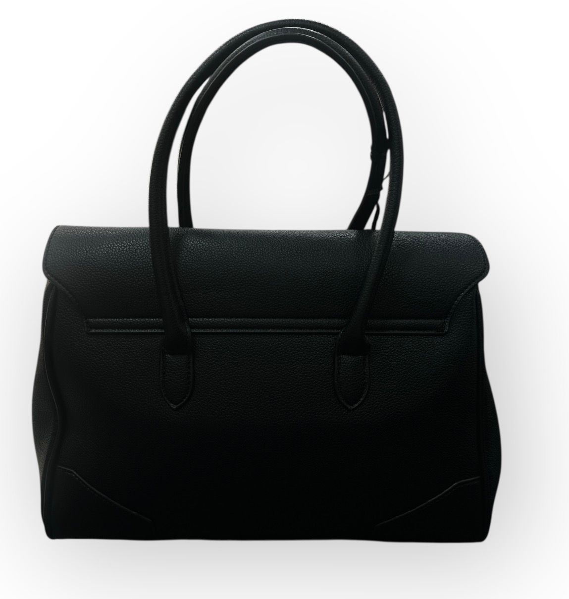 fornita di due manici rigidi cosi da poterla portare a mano ma anche sotto braccio e di una tracolla regolabile in ecopelle nera.