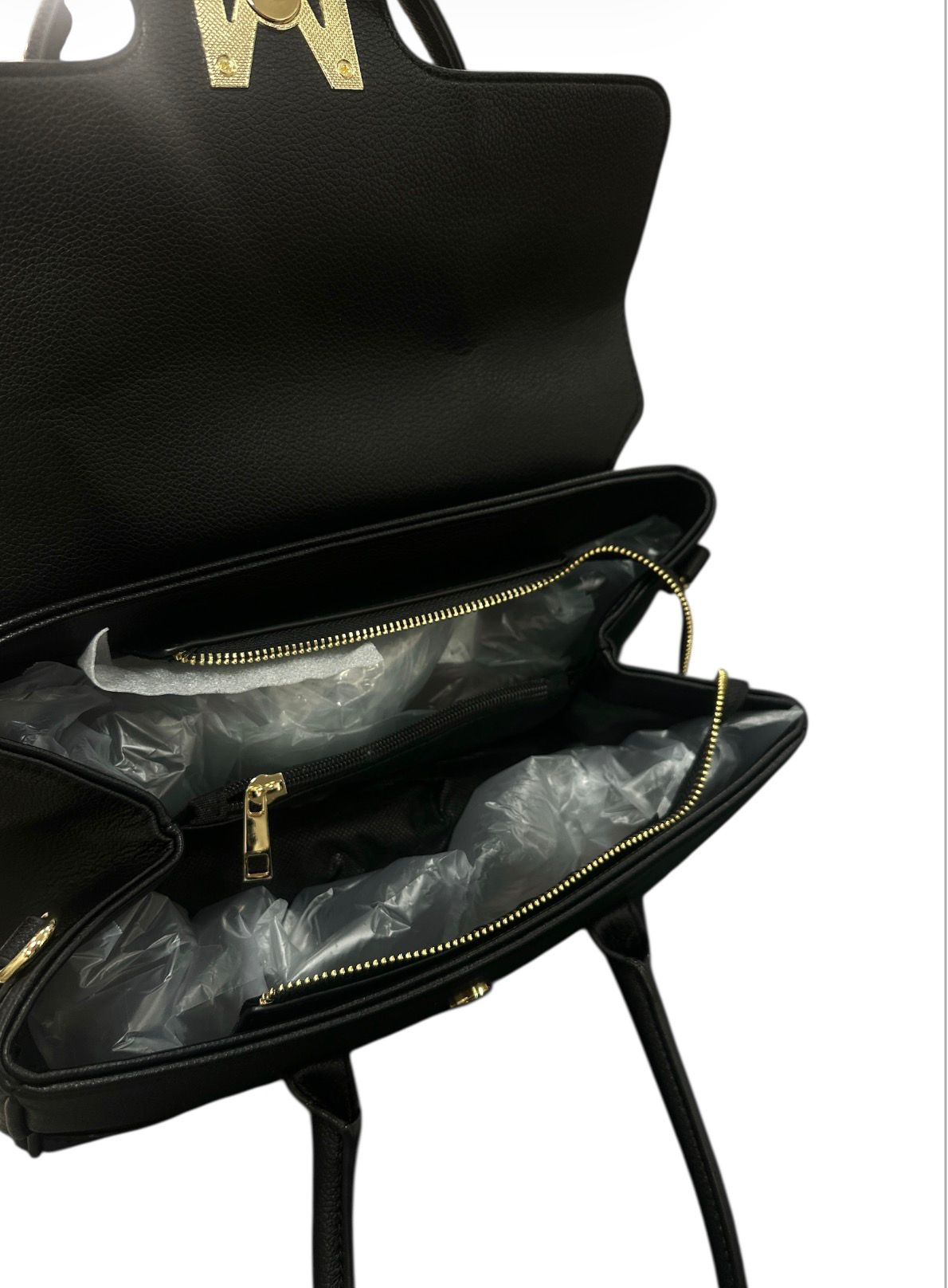 nella parte frontale della borsa troviamo in lettere metalliche dorate la ''M'' di marc ellis che richiama il brand