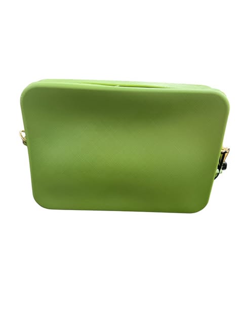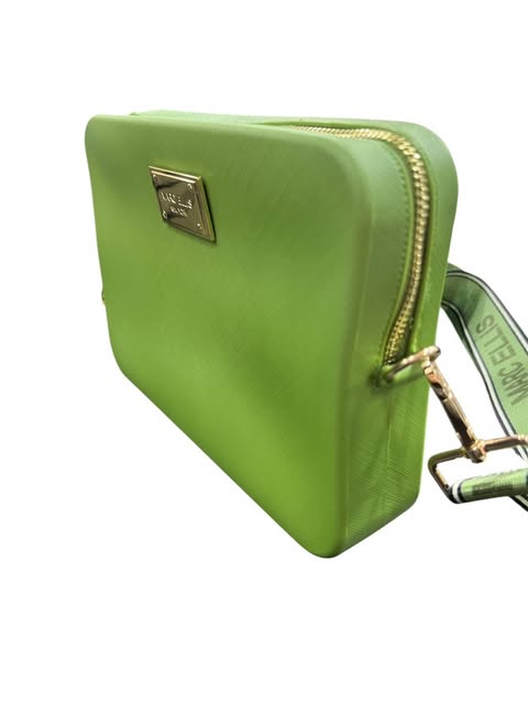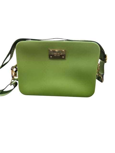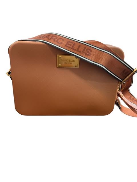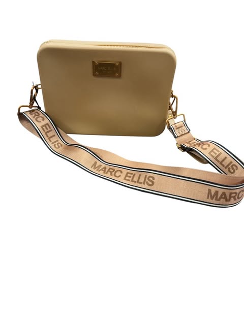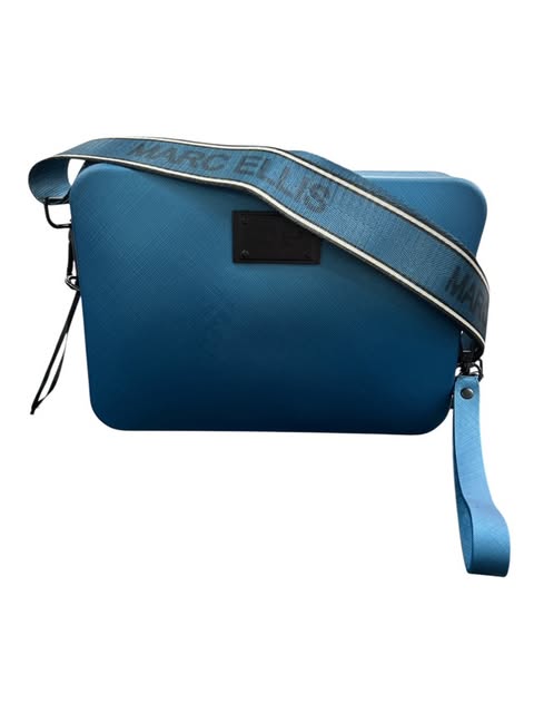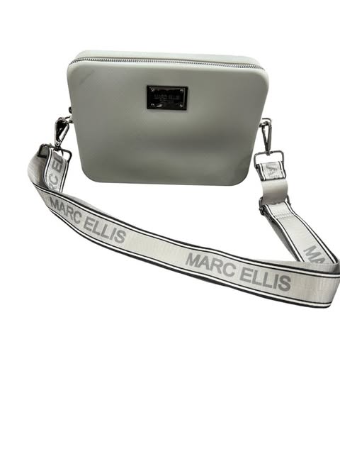 Borsa marc ellis di forma rettangolare, con struttura rigida e linee pulite in stile camera bag materiale in pvc dettaglio frontale placca metallica con inciso scritta marc ellis.