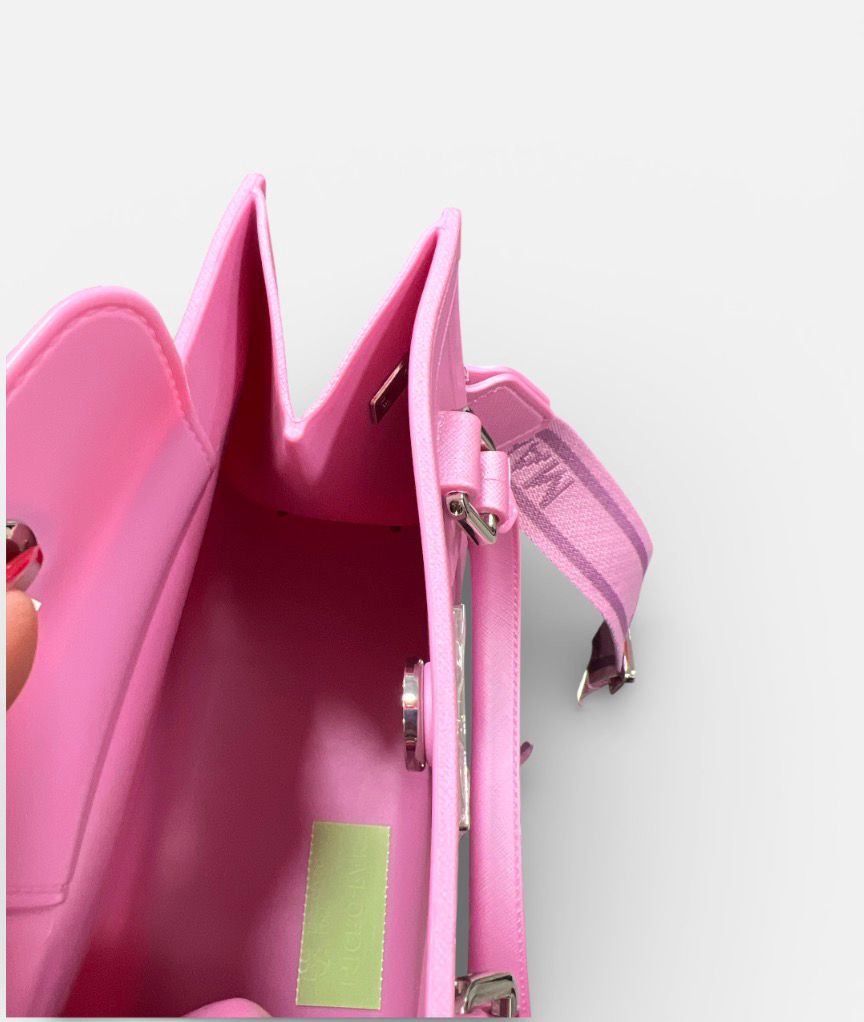 BORSETTA A MANO GOMMATA CON CHIUSURA MAGNETICALOGO FRONTALE CON TARGHETTA IN METALLOTRACOLLA IN STOFFA LOGATA,REGOLABILE.: 19x15x8cm