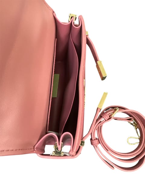 • Tracolla: in catena dorata intrecciata a spalla + tracolla in tessuto regolabile visibile nella parte superiore.