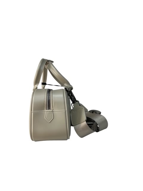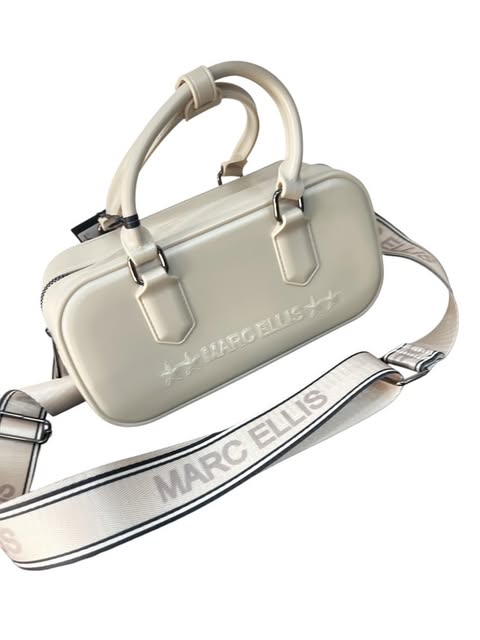 Piccolo bauletto a mano di forma rettangolare, realizzato in gomma, leggera e resistente. La tracolla in tessuto regolabile offre comodità...