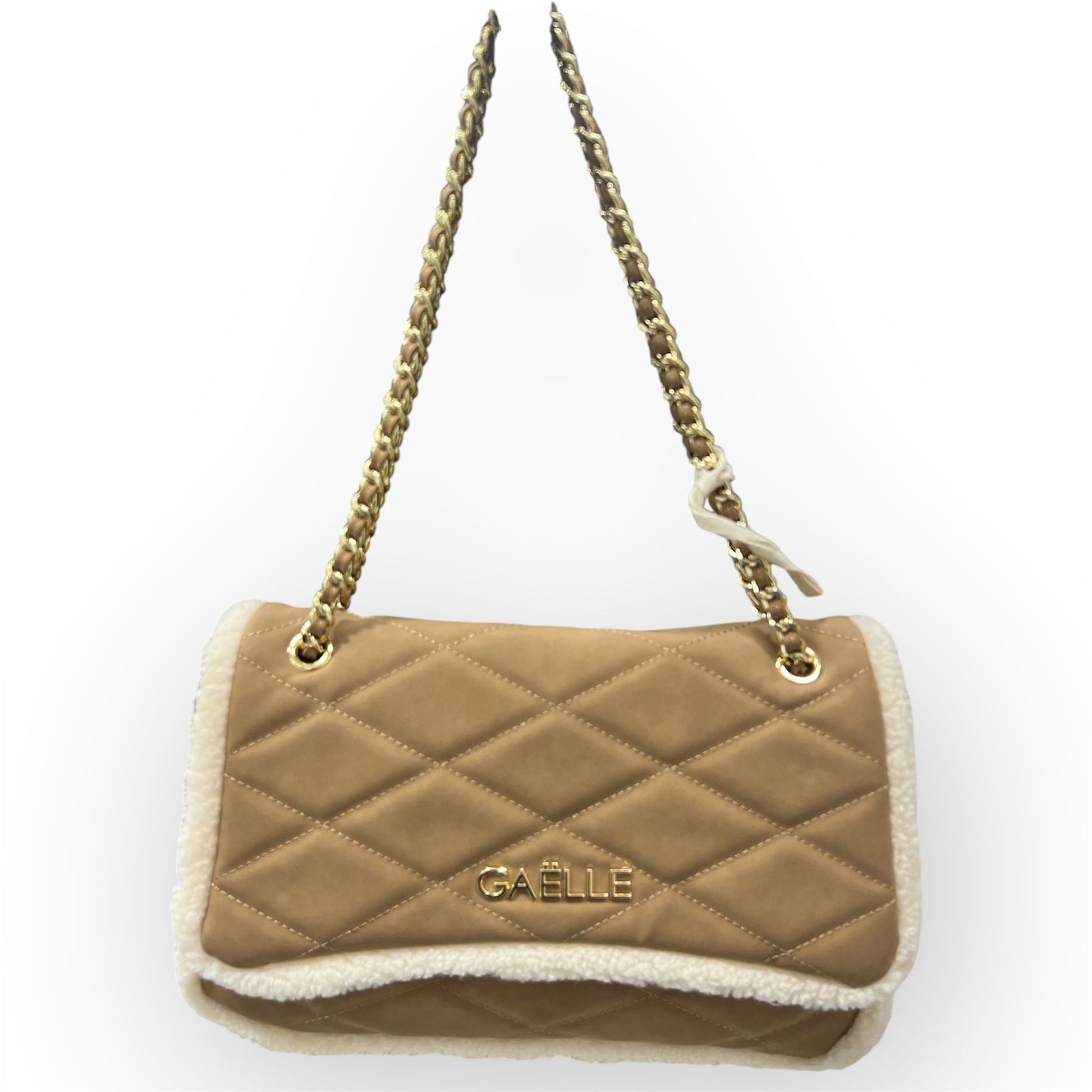Borsa gaelle in tessuto con bordatura in pelliccia.apertura con patta e tracolla in catena e ecopelle. borsa perfetta per occasioni...
