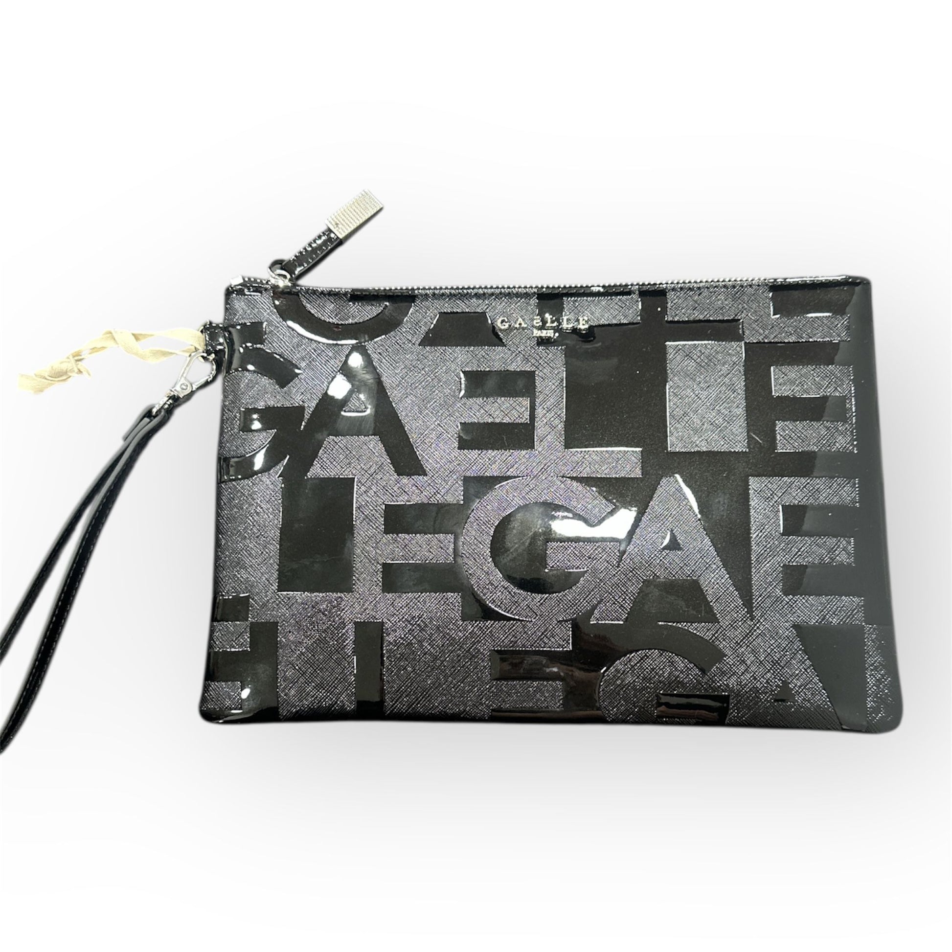 REGULAR POCHETTE LETTERING VERNICE.FORNITA DI APERURA CON ZIP PRATICA E CAPIENTE.