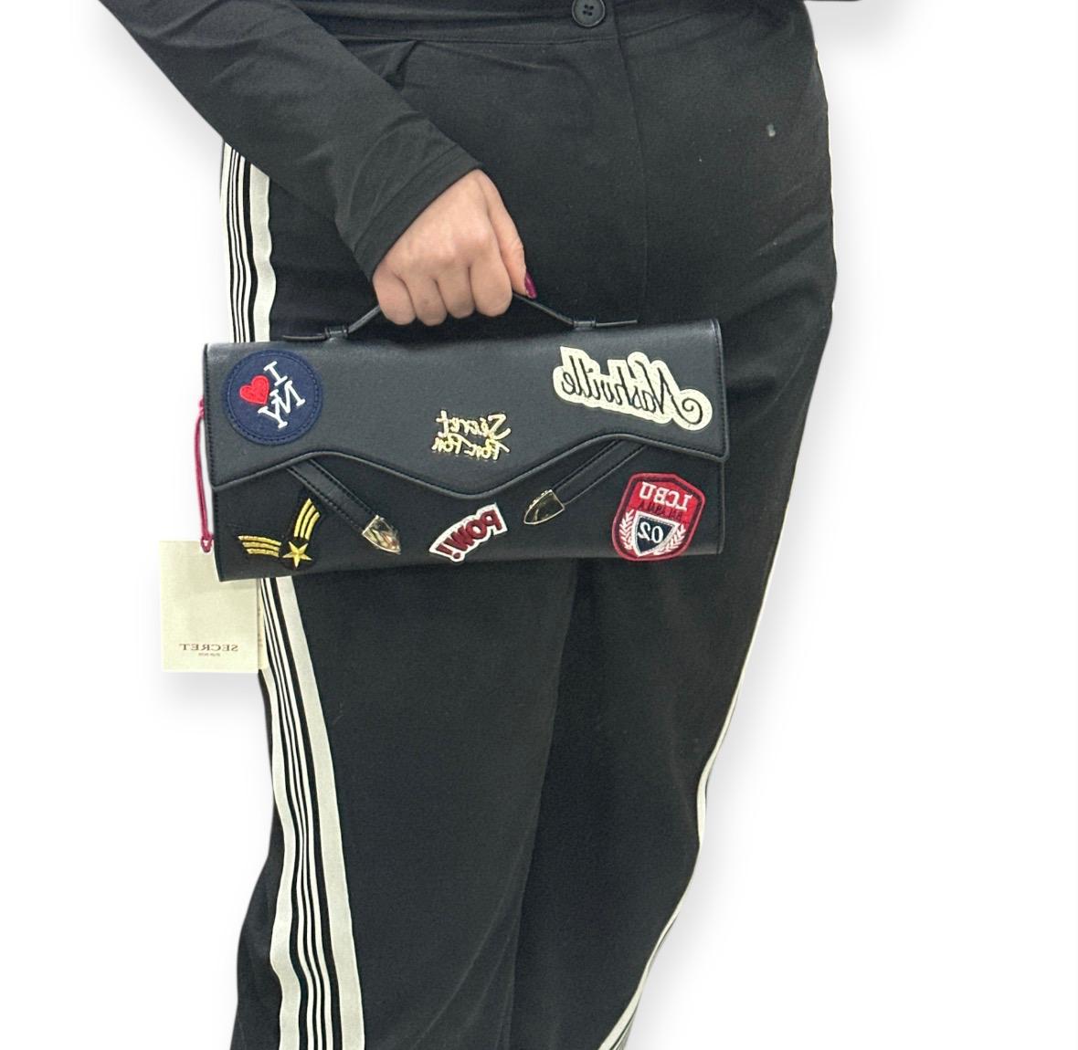 La Luisita Clutch Patch Black si distingue per il suo design contemporaneo arricchito da patch decorativi su una base nera...