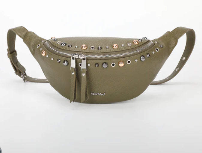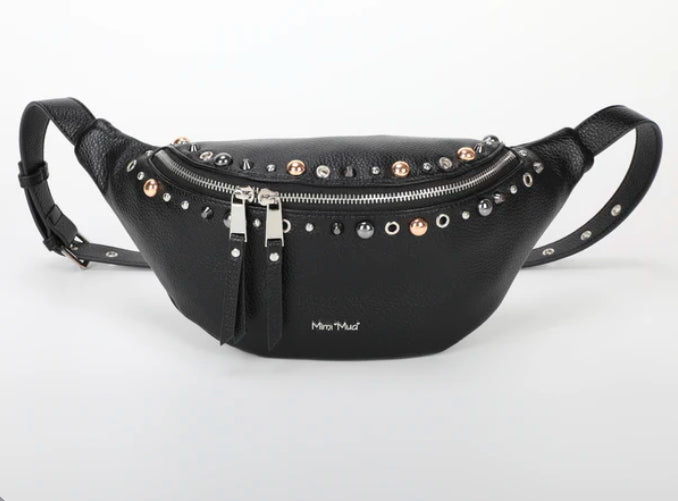 MARSUPIO CON BORCHIE CHIUSURA CON ZIP TASCA DIETRO CON ZIP