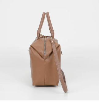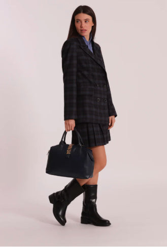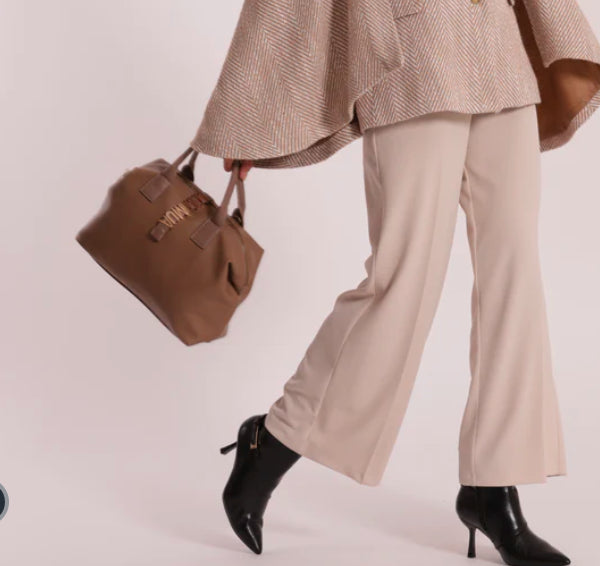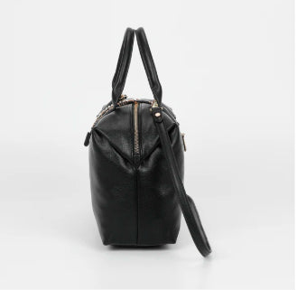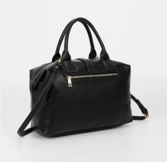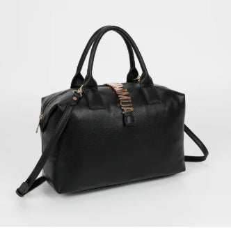 BORSA BAULETTO CON LETTERING A MANO E CON TRACOLLA REGOLABILE CHIUSURA CON ZIP E BOTTONE A PRESSIONE CON TASCA DIETRO A SCOMPARSA CON ZIP LUNGHEZZA: 33cm