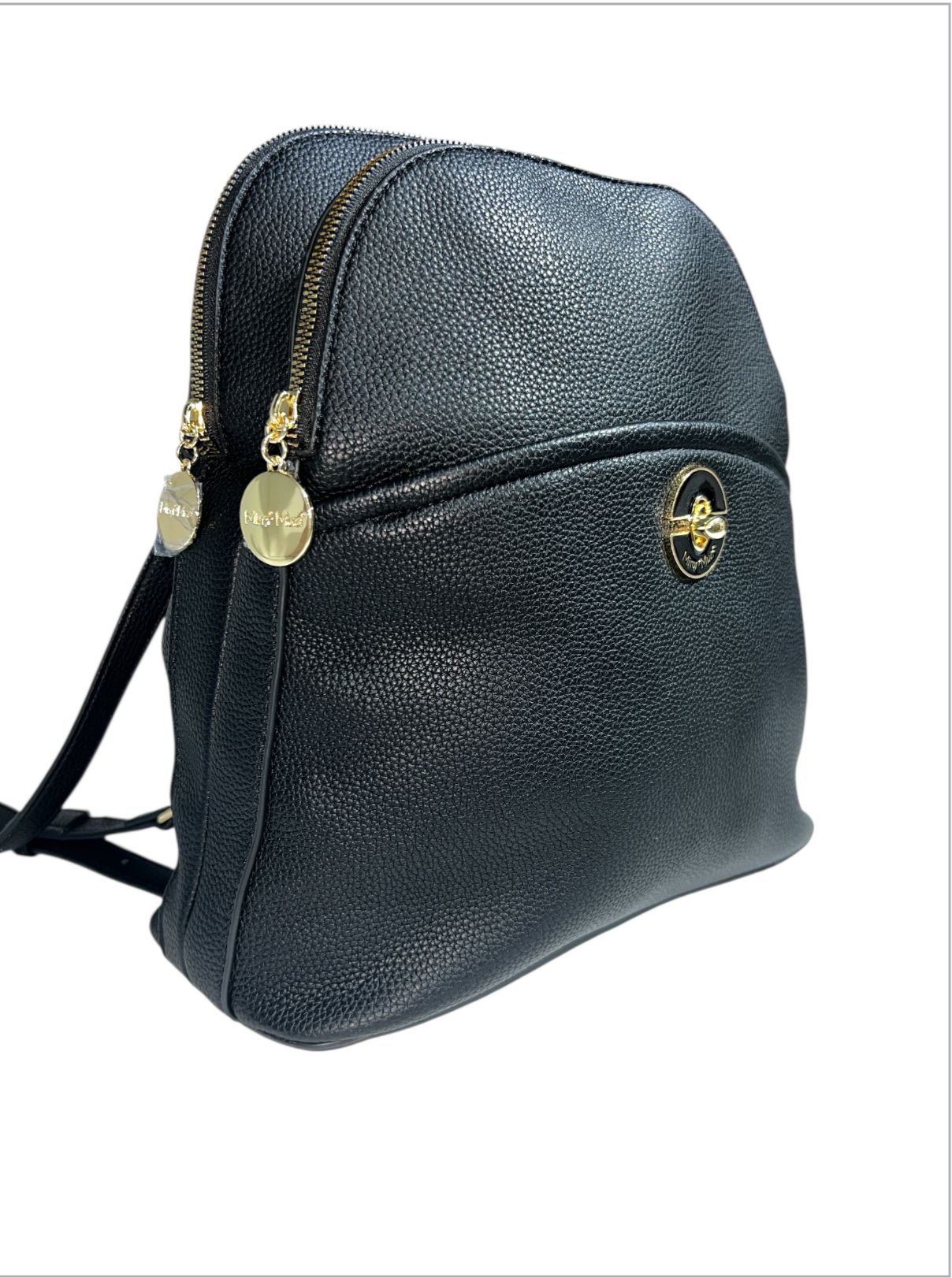 ZAINO A MANO E SPALLA CON SPALLACCI REGOLAILI CHIUSURA CON ZIP 2 SCOMPARTI TASCA AVANTI CON CHIUSURA A SCATTO TASCA DIETRO ESTERNA CON ZIP