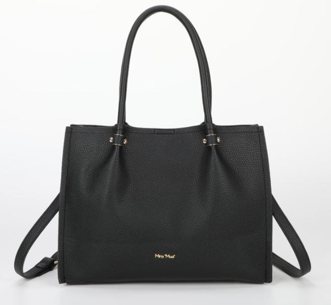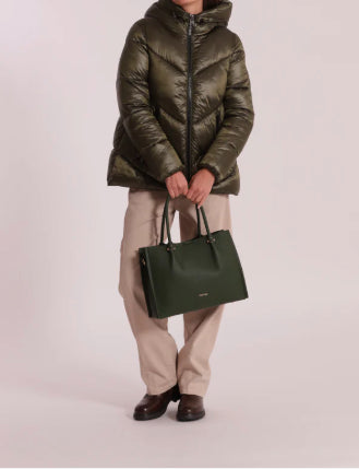 BORSA A MANO A SPALLA E CON TRACOLLA REGOLABILE CON RIFINITURE IN TINTA CON TRE SCOMPARTI DUE CON CHIUSURA A CALAMITE E UNO SCOMPARTO CON CHIUSURA ZIP LUNGHEZZA: 29,5cm