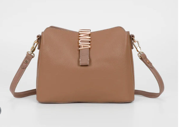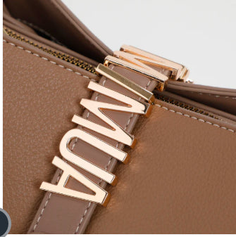 BORSA A TRACOLLA CON LETTERING CHIUSURA CON ZIP E PICCOLA PATTINA CON CHIUSURA A SCATTO TRE VANI DI CUI UNO CENTRALE CHIUSURA CON ZIP