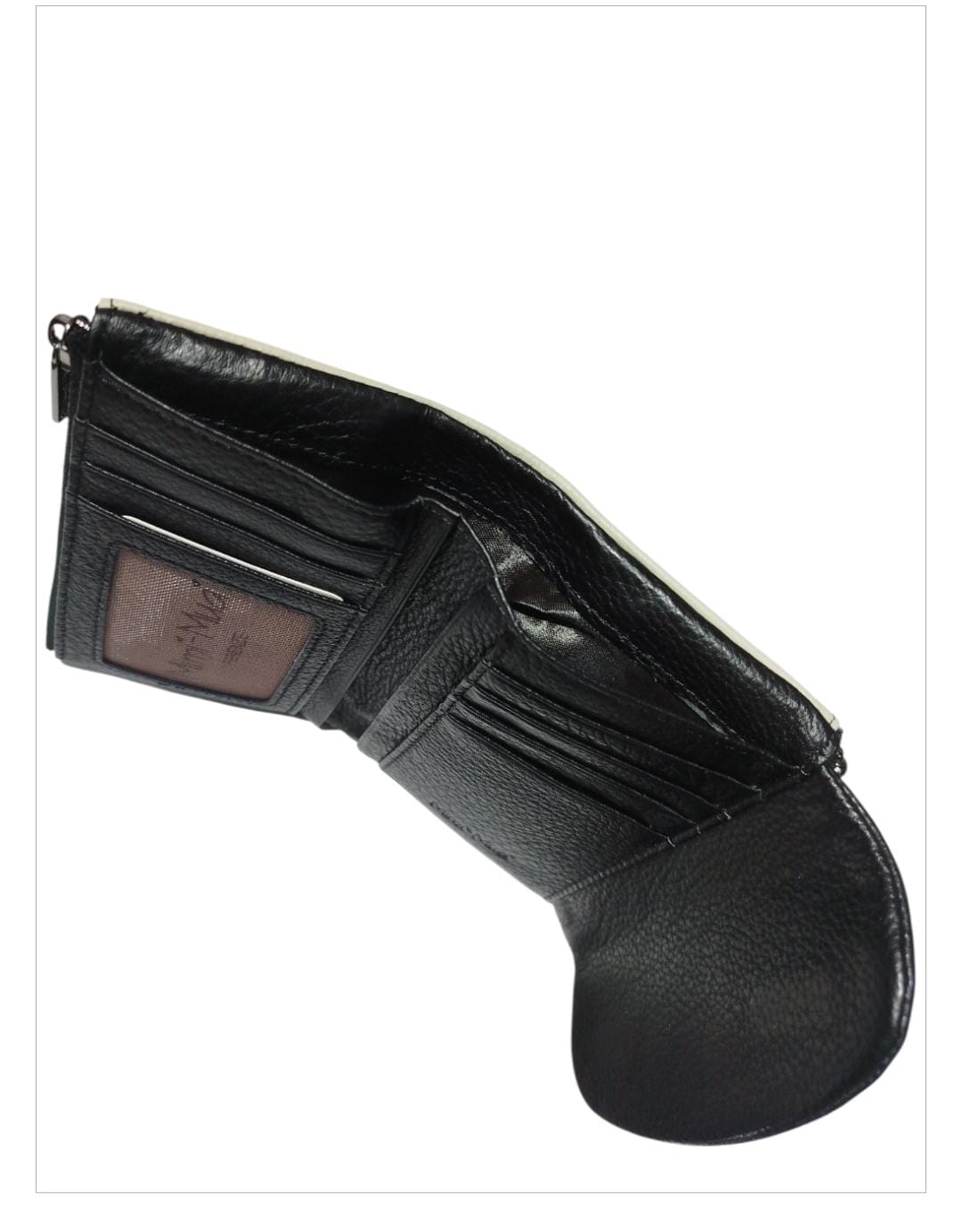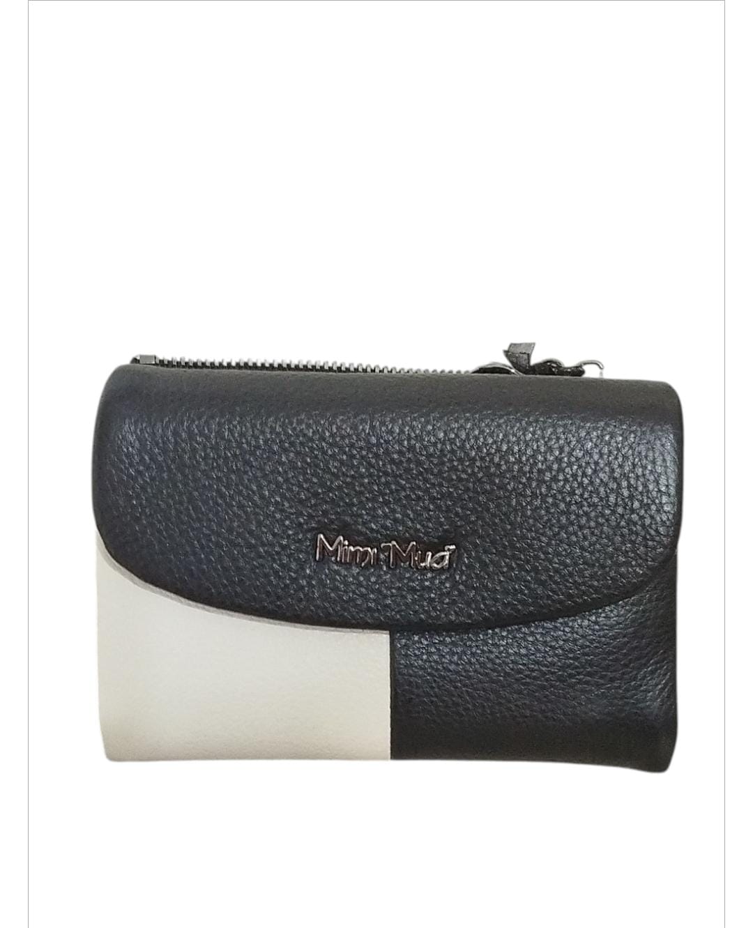 PORTAFOGLIO MEDIO CON PATTA CHIUSURA A CALAMITA INTERNO PORTACARTE E PER BANCONOTE CON TASCA ESTERNA CHIUSURA CON ZIP BICOLORE IN PELLE