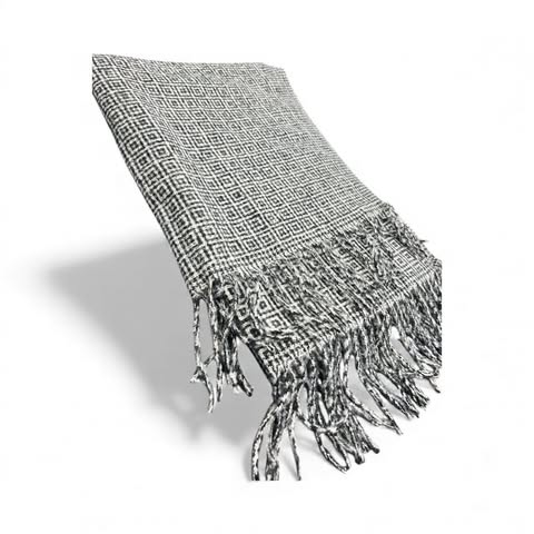 Sciarpa in lana multicolorCalda e morbida.Con frange.