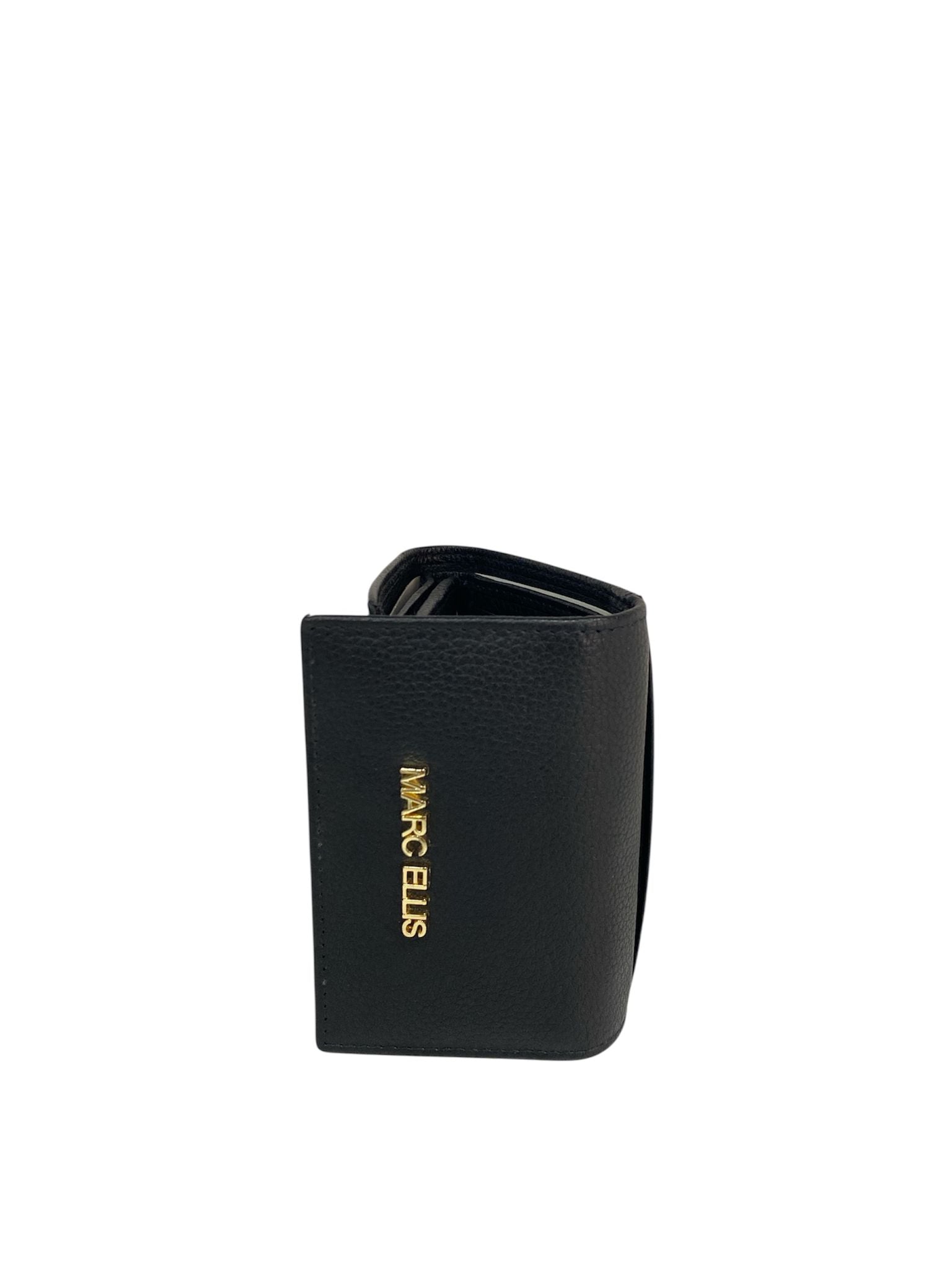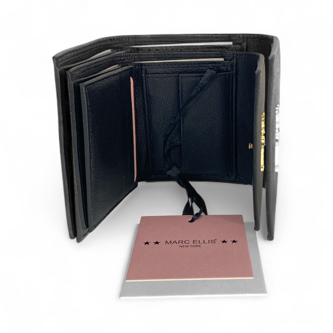 portafoglio marc ellis apertura a fisarmonica con bottoncino all'interno troviamo vari scomparti per carte, presente anche uno scomparto per monete e soldi in carta