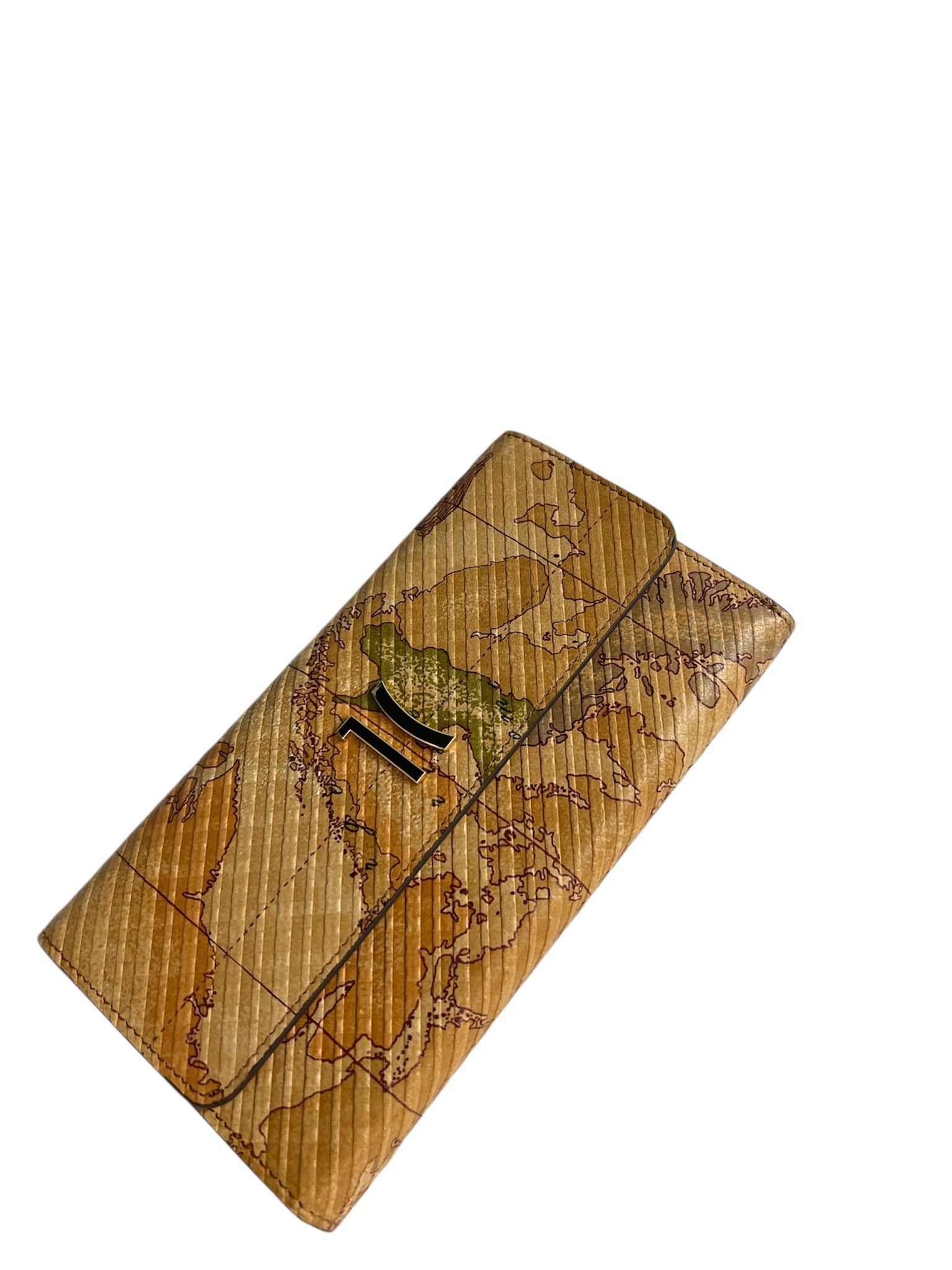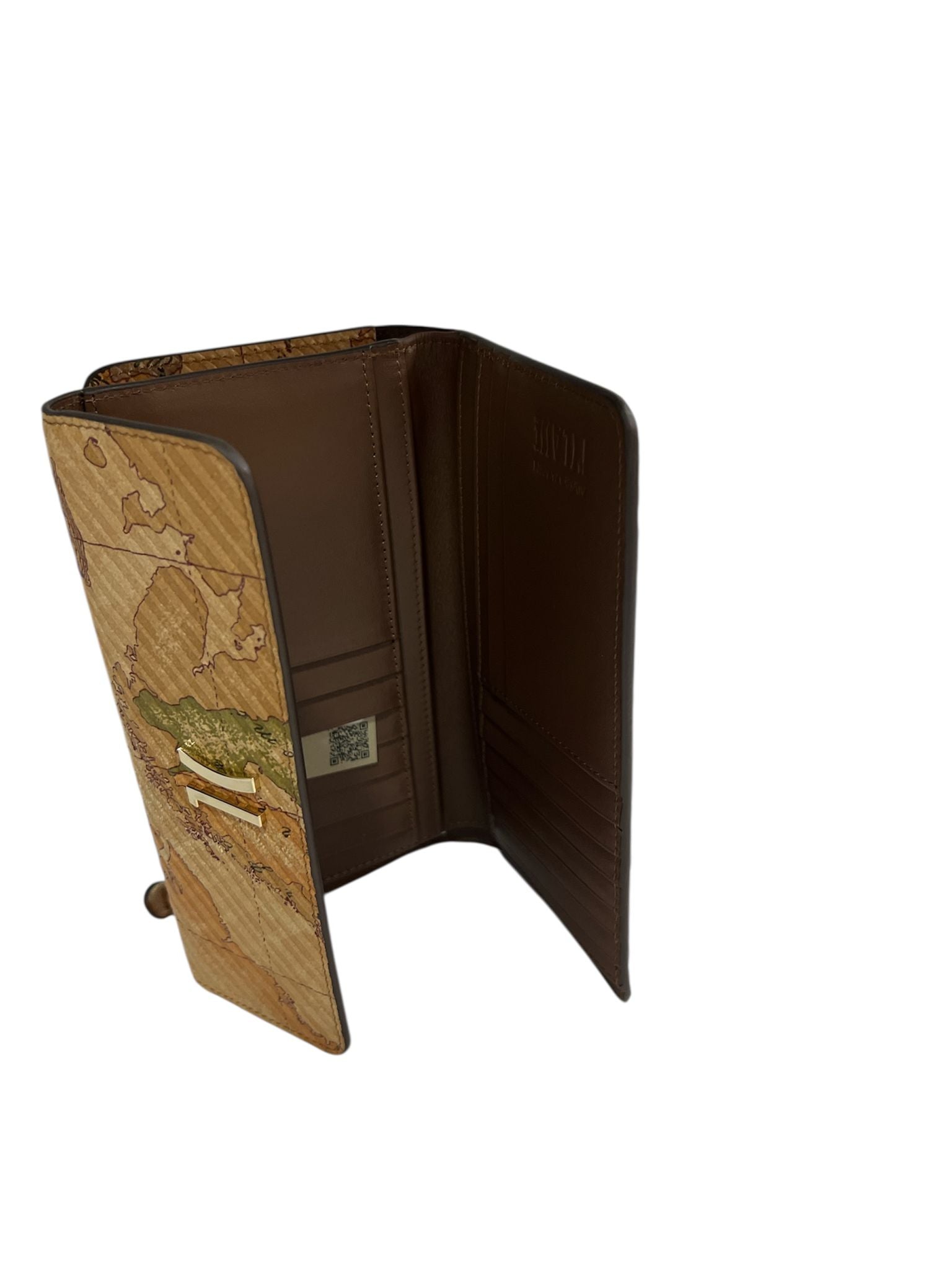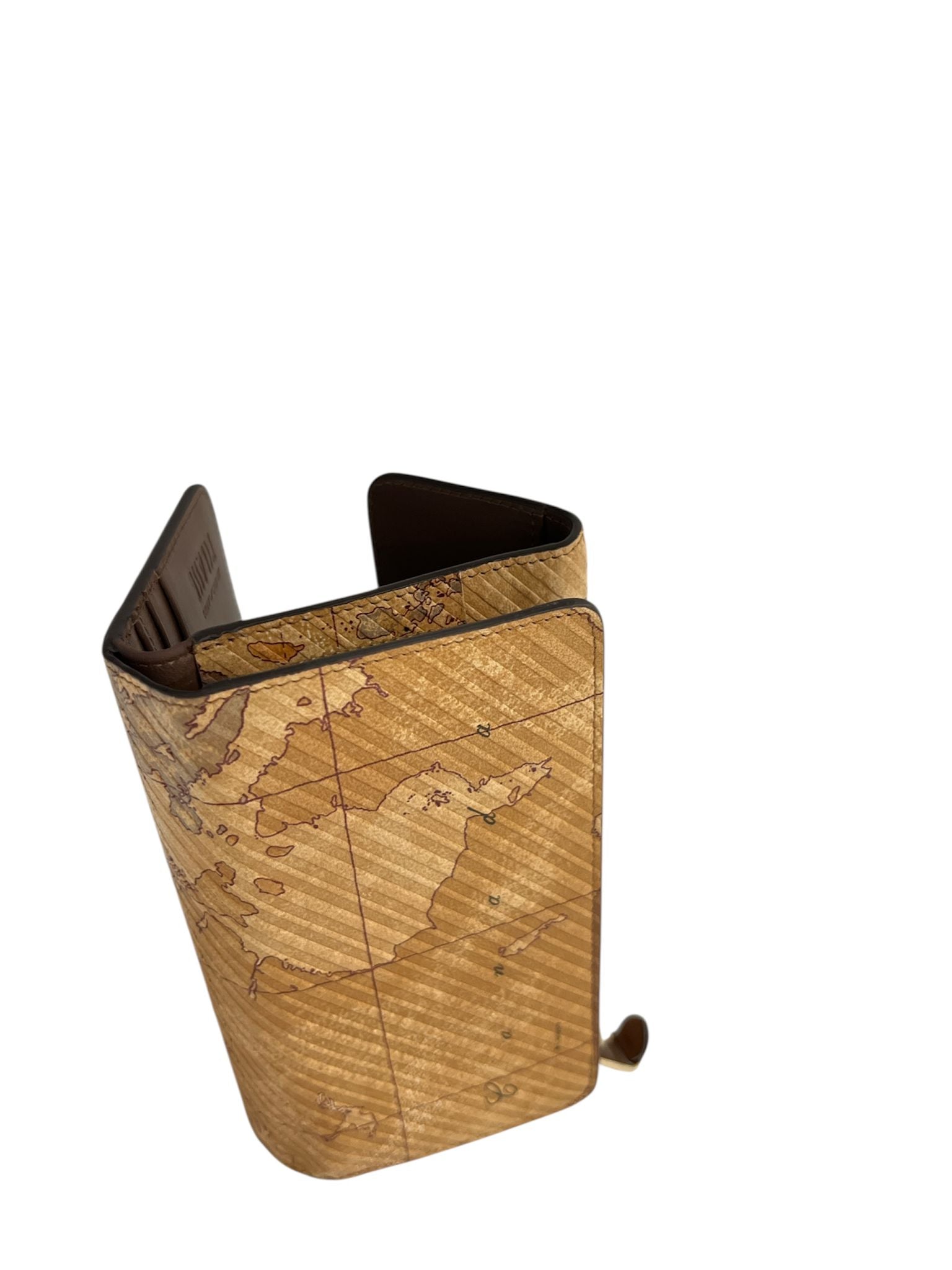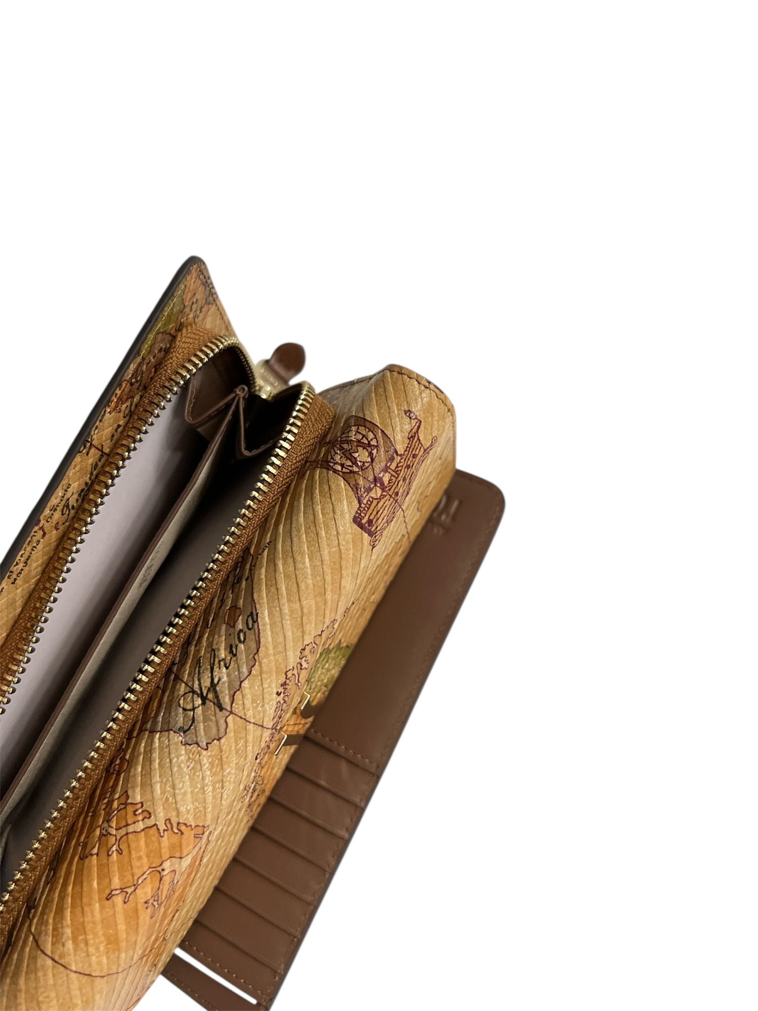 portafoglio alviero martini con un design a ''mappa'' vintage nella parte frontale troviamo il logo in metallo dorato 1 classe