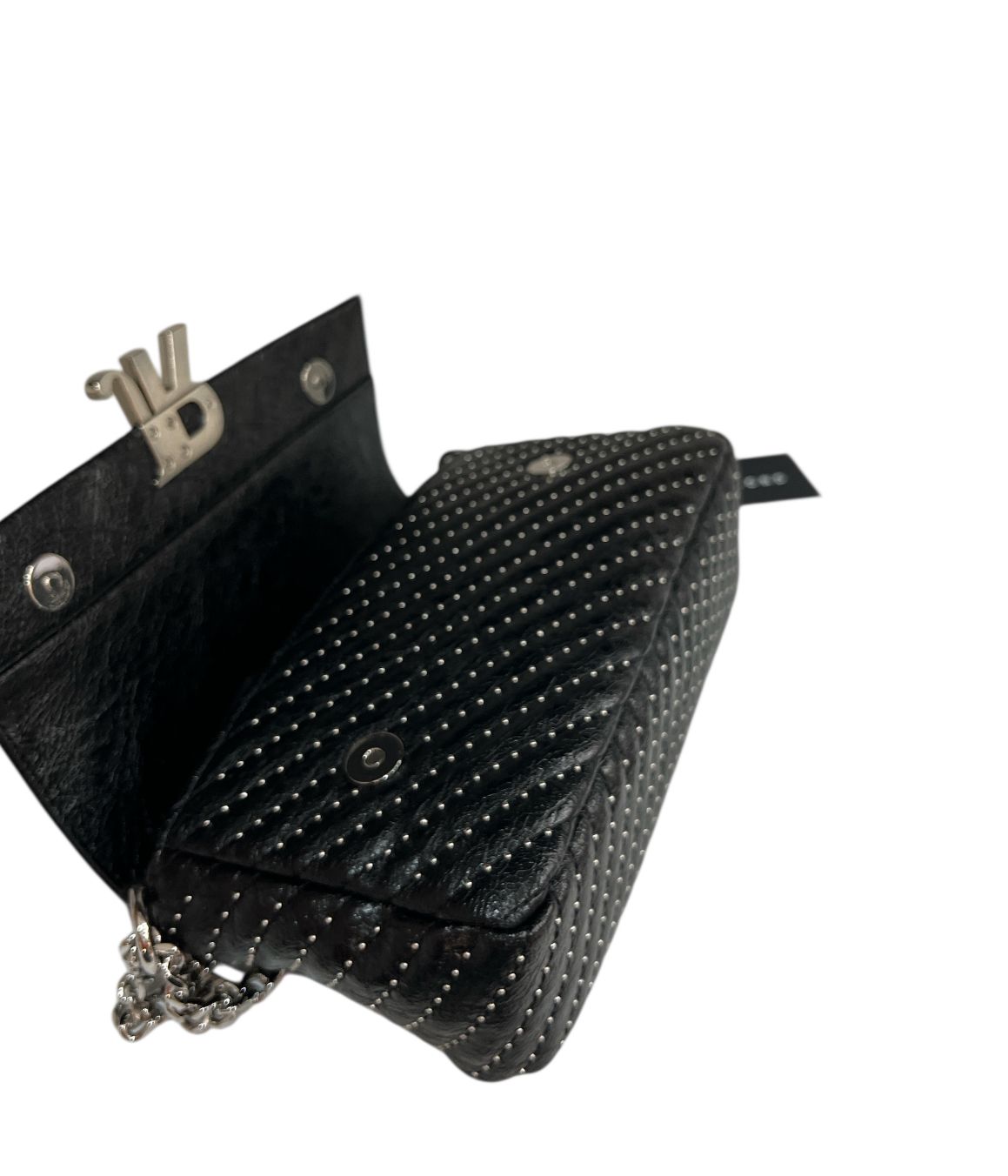 borsa richmond dallo stile elegante e morbido in materiale ecopelle con motivo trapuntato a righe diagonali impreziosito da piccole borchie tonde