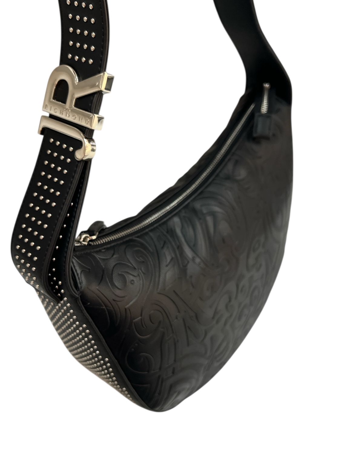 Borsa a spalla dal design ricercato caratterizzata da un motivo inciso che esalta l’eleganza del modello. Pensata per aggiungere un tocco di stile deciso e distintivo, è ideale per completare outfit moderni e di carattere con un accessorio versatile.