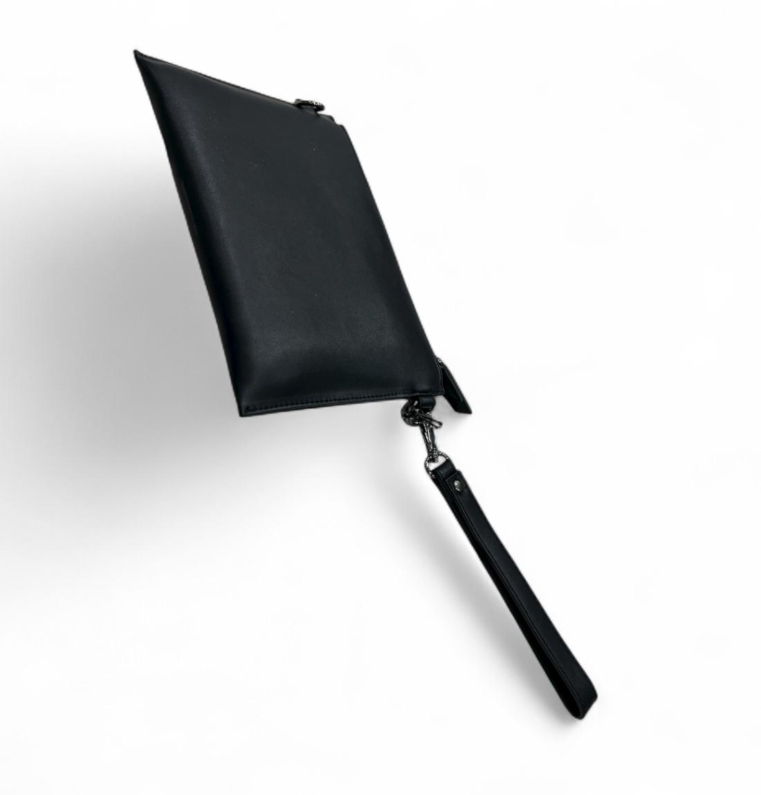 POCCHETTE SCHIACCIATA UOMO MARIO VALENTINO REALIZZATA IN ECOPELLE MARTELLATA FORNITA DI POLSIERA COMODA DA PORTARE A MANOAPERTURA CON ZIP AL...