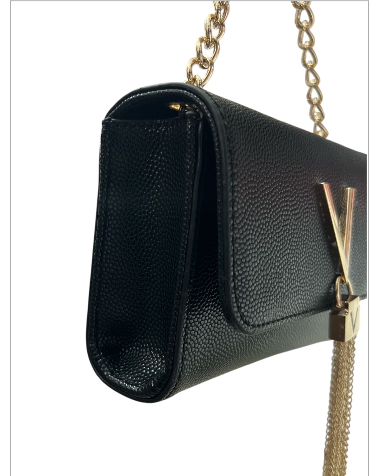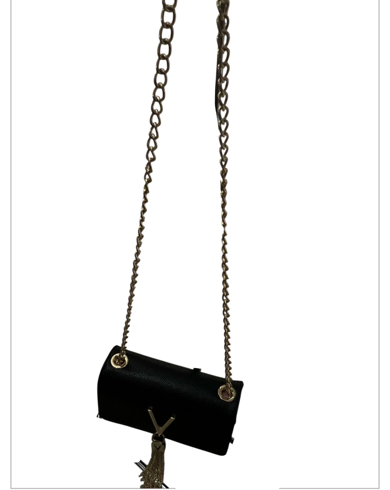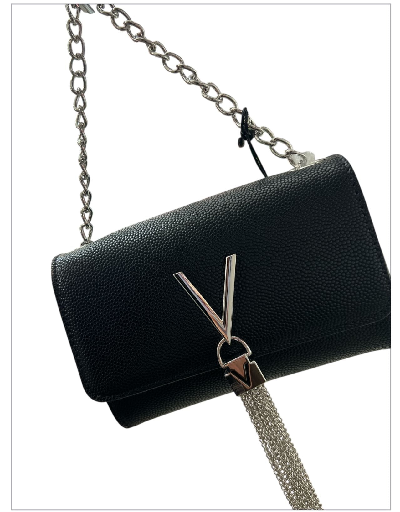 Borsa di piccole dimensioni valentino linea divina in ecopelle martellata leggermente lucida.fornita di tracolla in catena.la particolarità della borsa è...