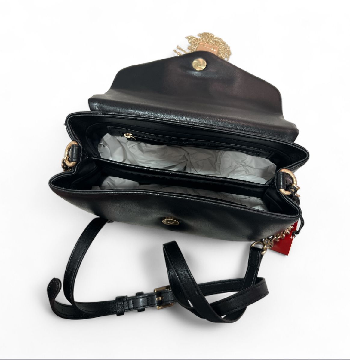 fornita di tracolla in catena con dettaglio in pelle che appoggia sulla spalla cosi da renderla più comoda e pratica da utilizzare.