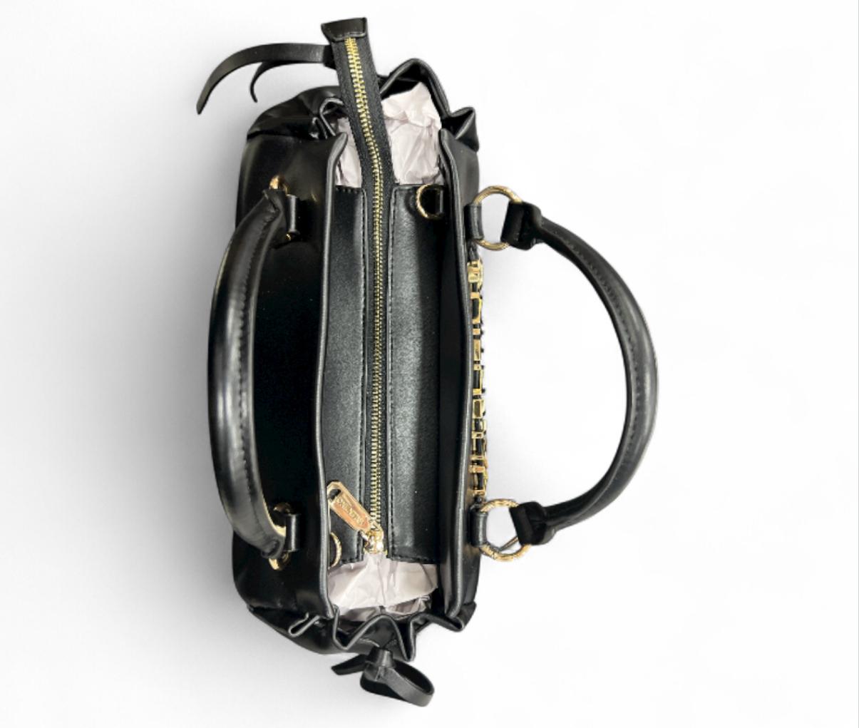 DESCRIZIONEBauletto a mano, dalle piccole dimensioni, con logo in lettere metalliche grandi.fornita anche di tracolla regolabile cosi da poterla portare...