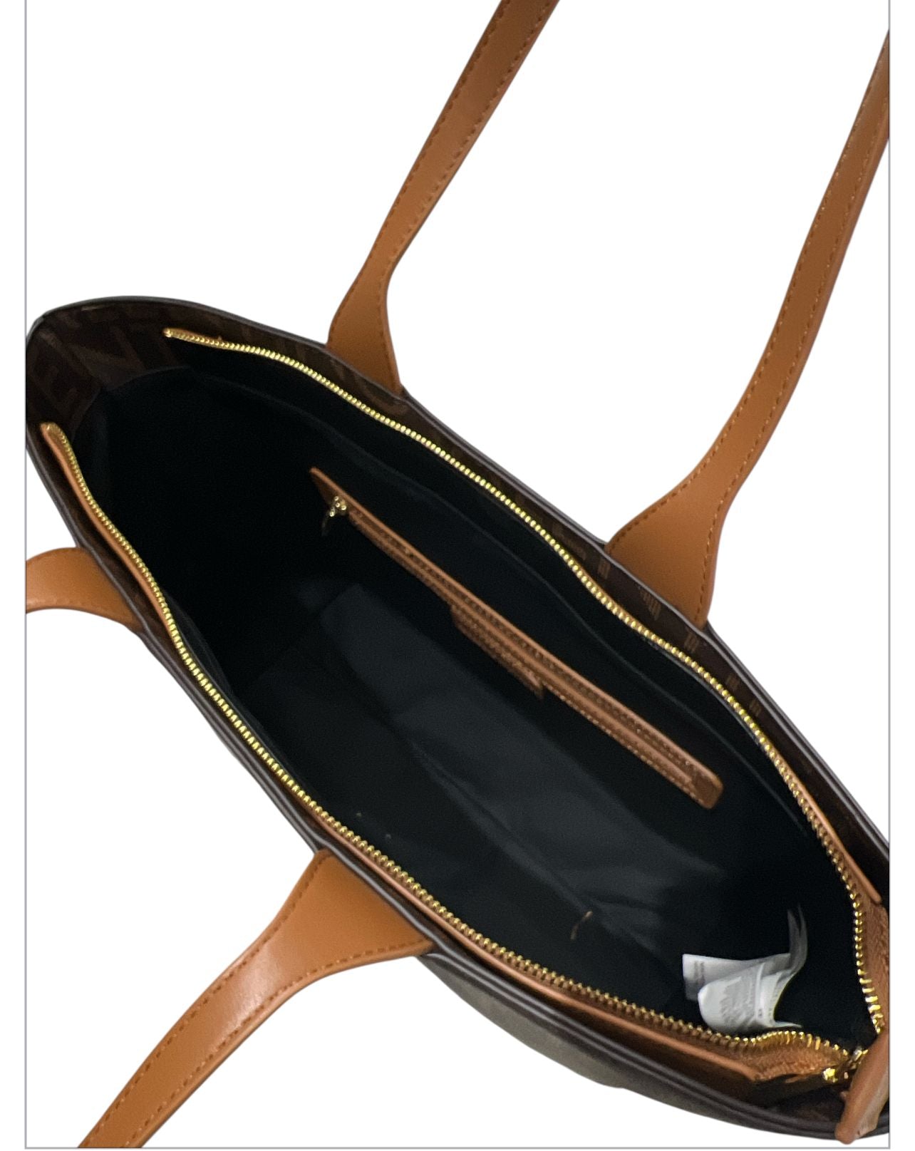 DESCRIZIONEBorsa con stampa all over logato su base grana riciclata, e dettagli in nappa tracolla a nastro con logo jaquard...
