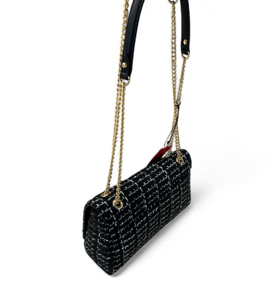 DESCRIZIONEPattina con materiale in tessuto, bicolore, su cui sono presenti logo in lettere metalliche.DIMENSIONI:Altezza: 17 cmLunghezza: 25.5 cmLarghezza: 9 cm