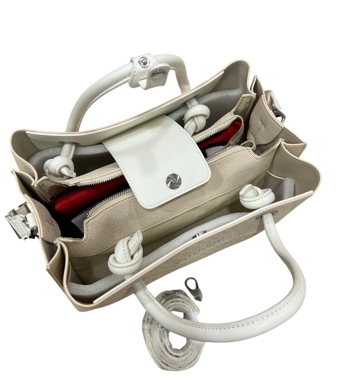 BORSA A SPALLA IN TESSUTO CON MANICO DETTAGLIATO DA LETTERE.CON TRACOLLA REGOLABILE E REMOVIBILEAltezza: 15 cm Lunghezza: 25 cm Ampiezza:...