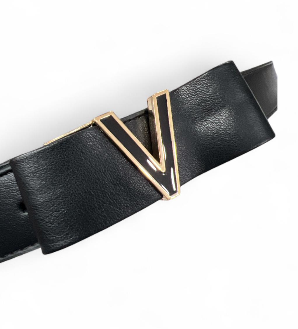 Cintura valentino linea waffle in ecopelle liscia.particolarità della fibbia che presenta la ''V'' che riconduce al brand in metallo contornato...