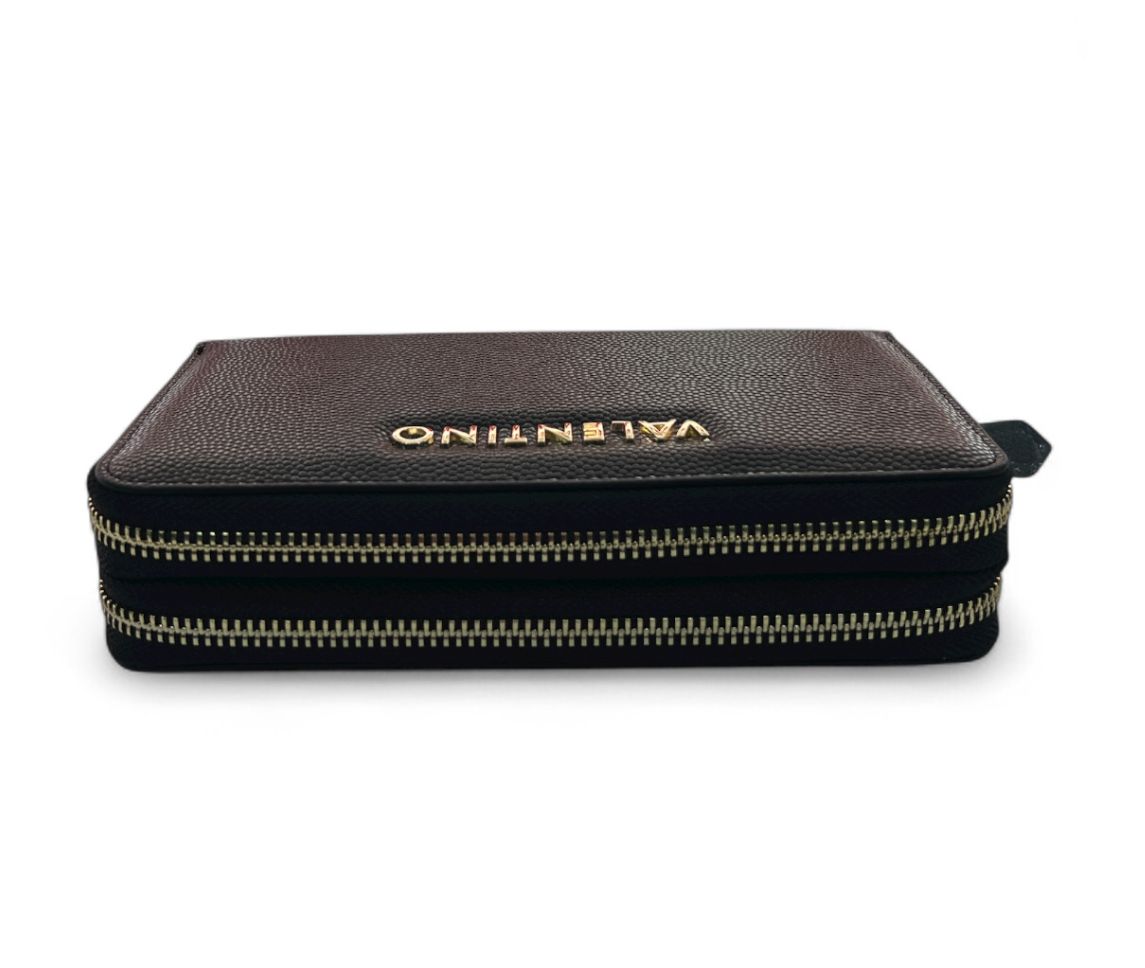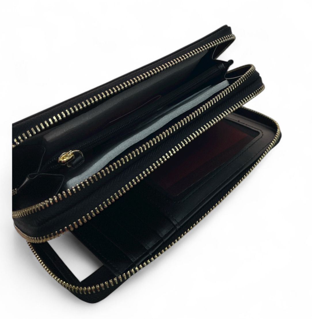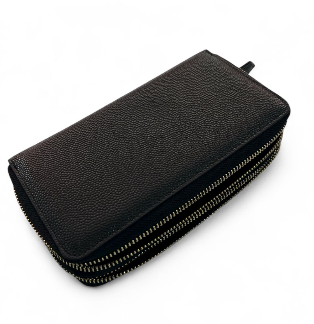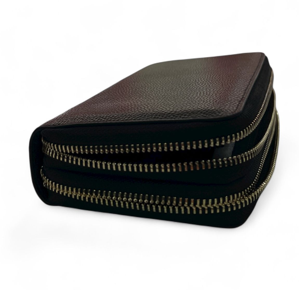 Portafoglio doppia zip-SimipelleCon logo frontale in metallo.Scomparti all'interno per porta carte, banconote , porta monete.