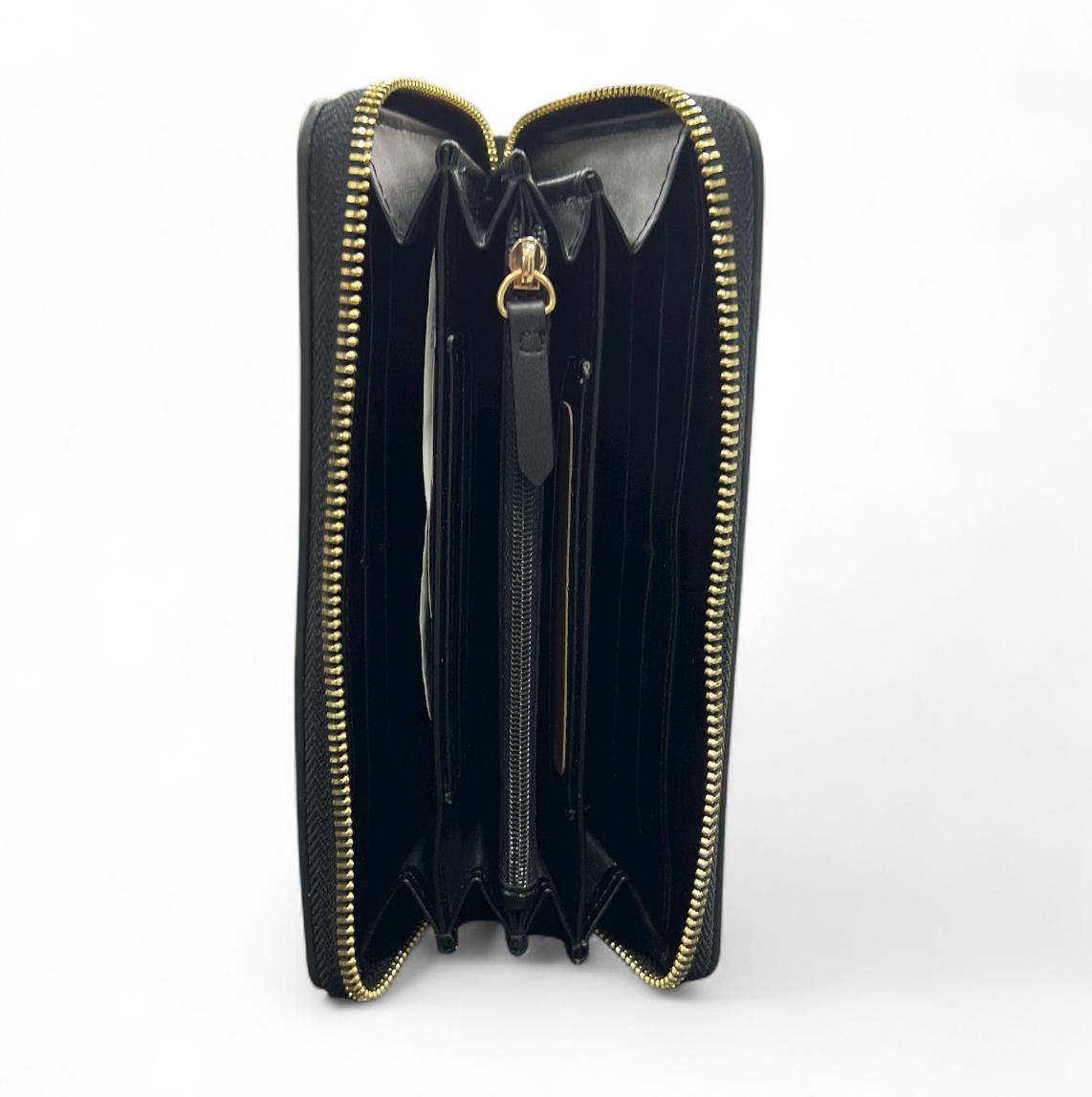 fornita di apertura con zip all'interno sono presenti multi scomparti dove riporre banconote, carte, documenti e di uno scomparto con zip per riporre le monete