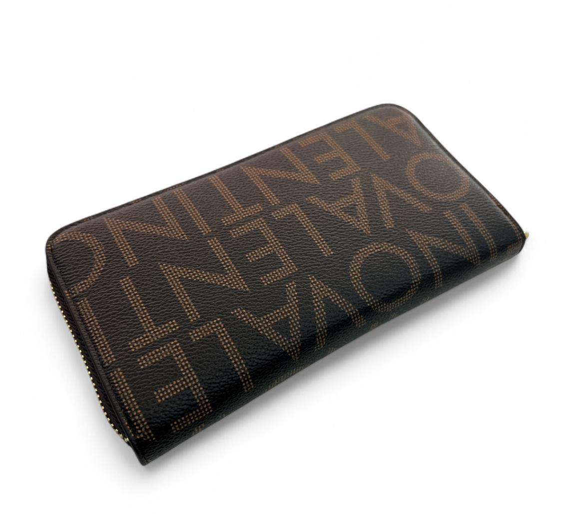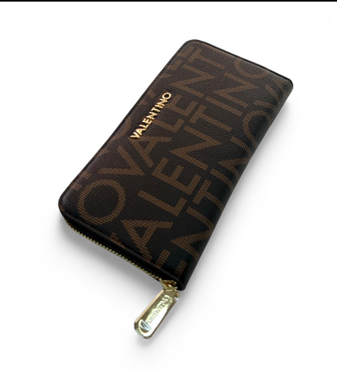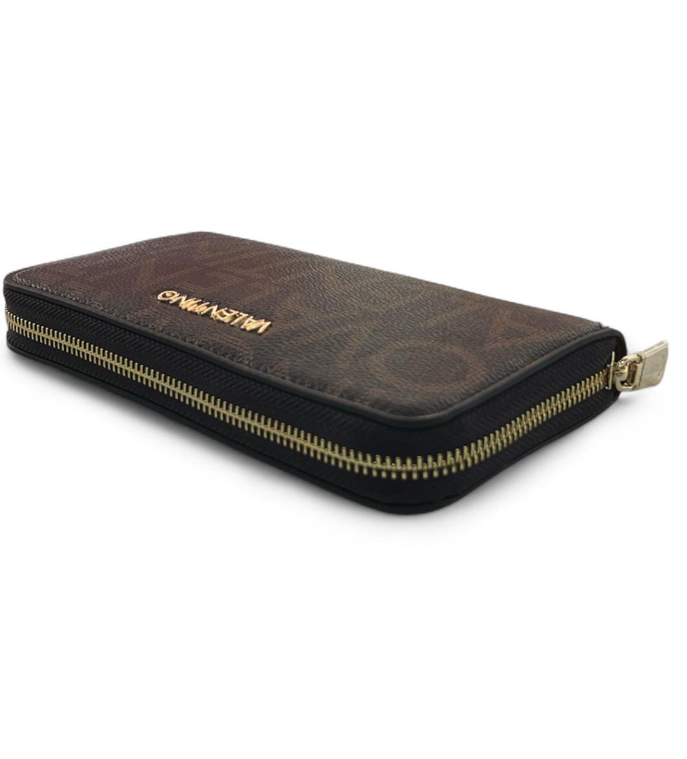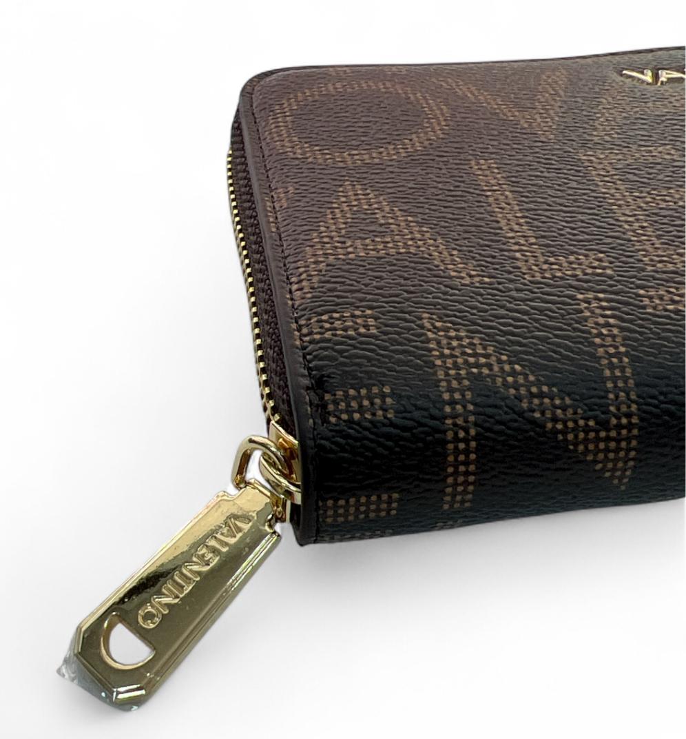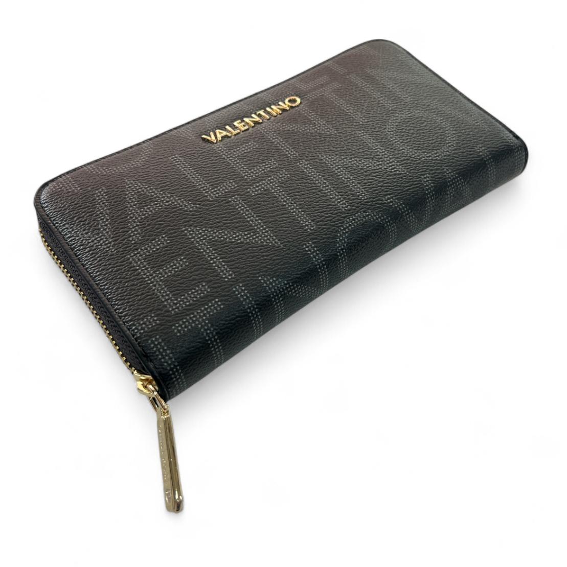 Portafoglio valentino con zip logato, dettagli in oro.