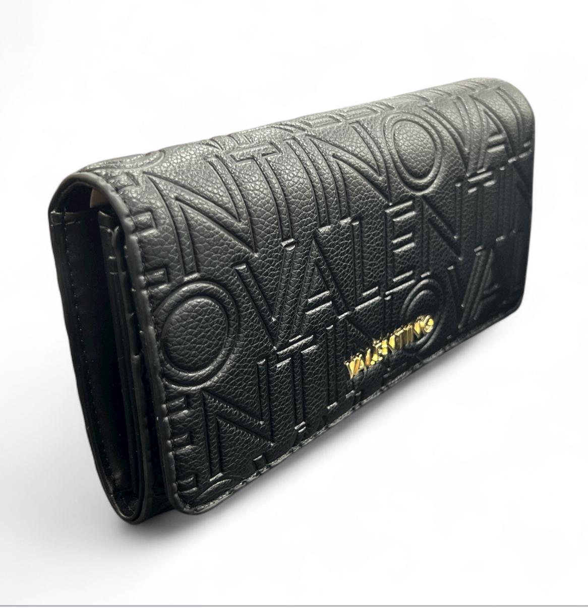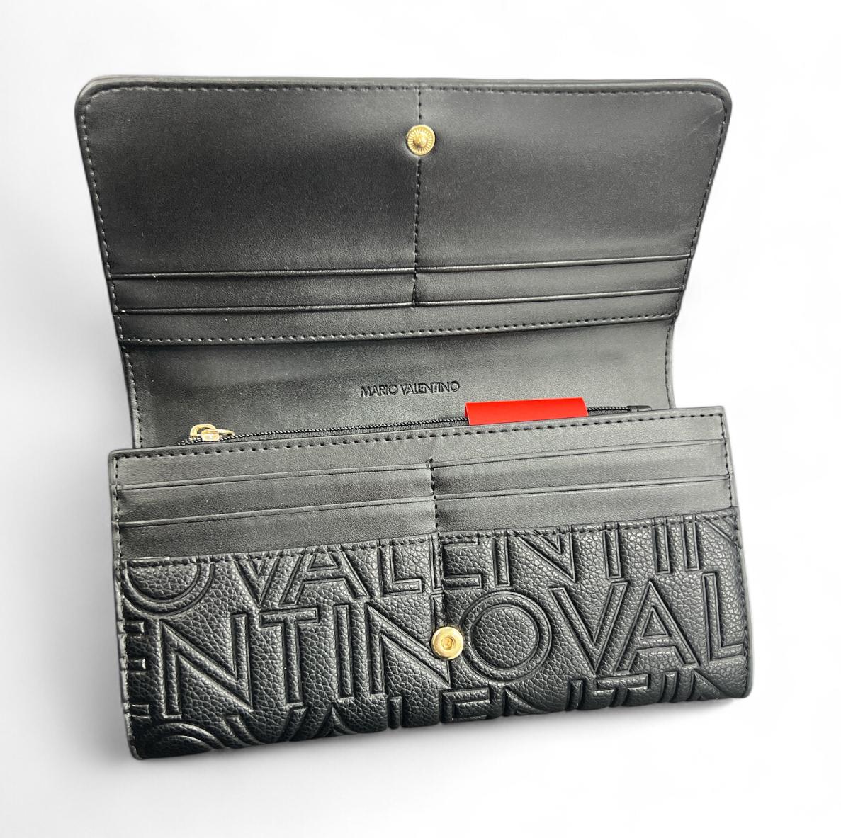 portafoglio valentino in ecopelle con logo su intero portafoglio.