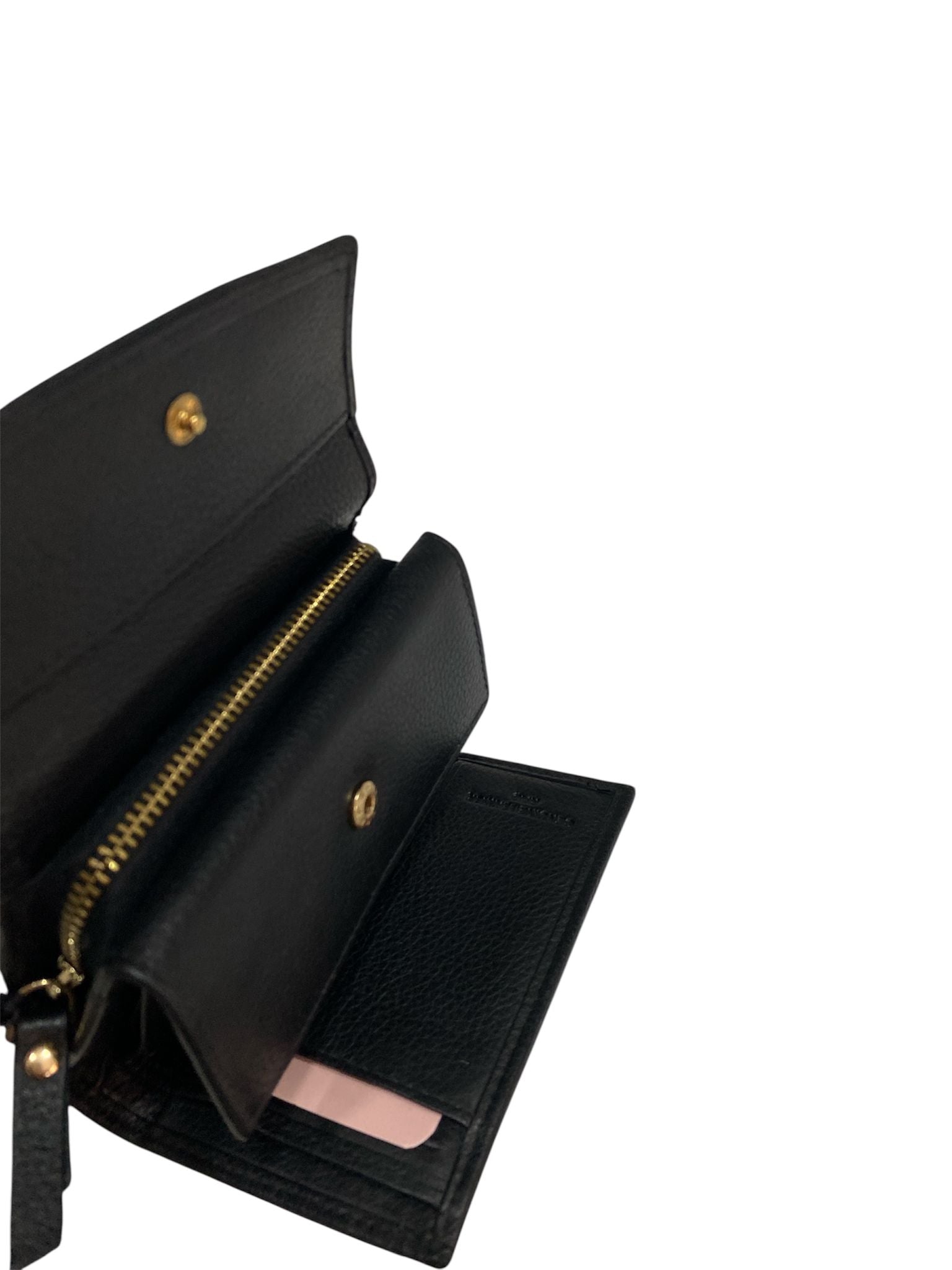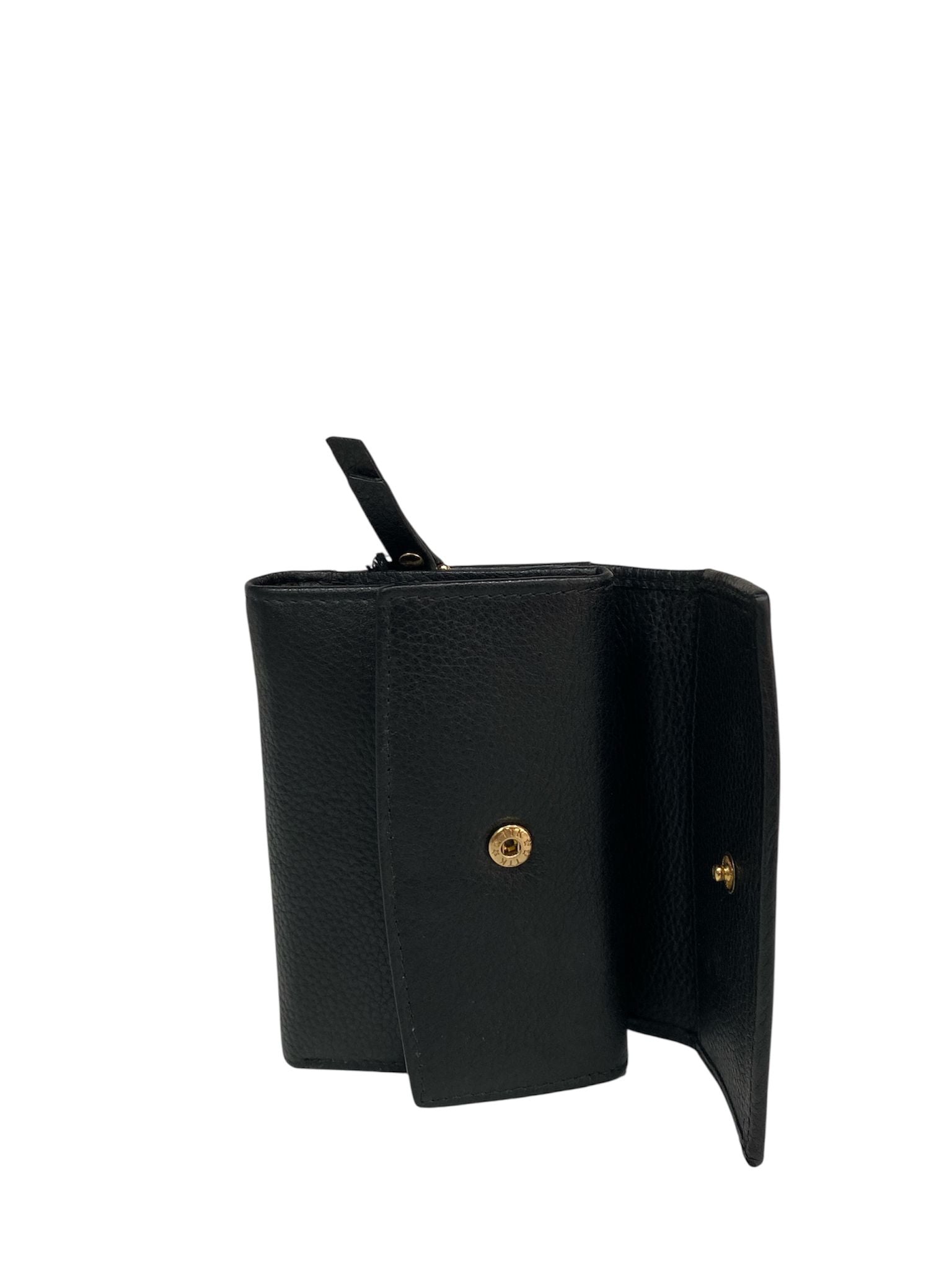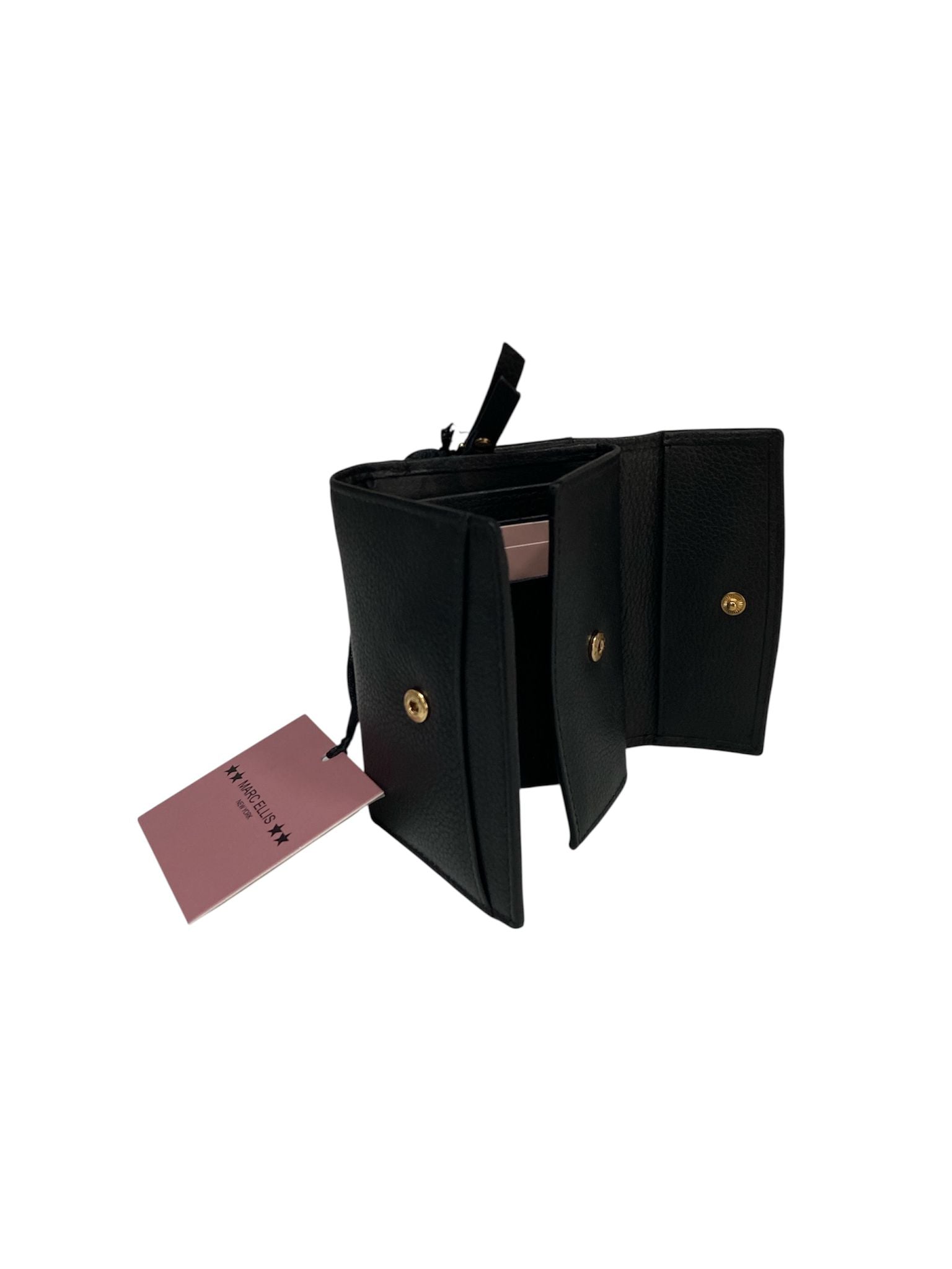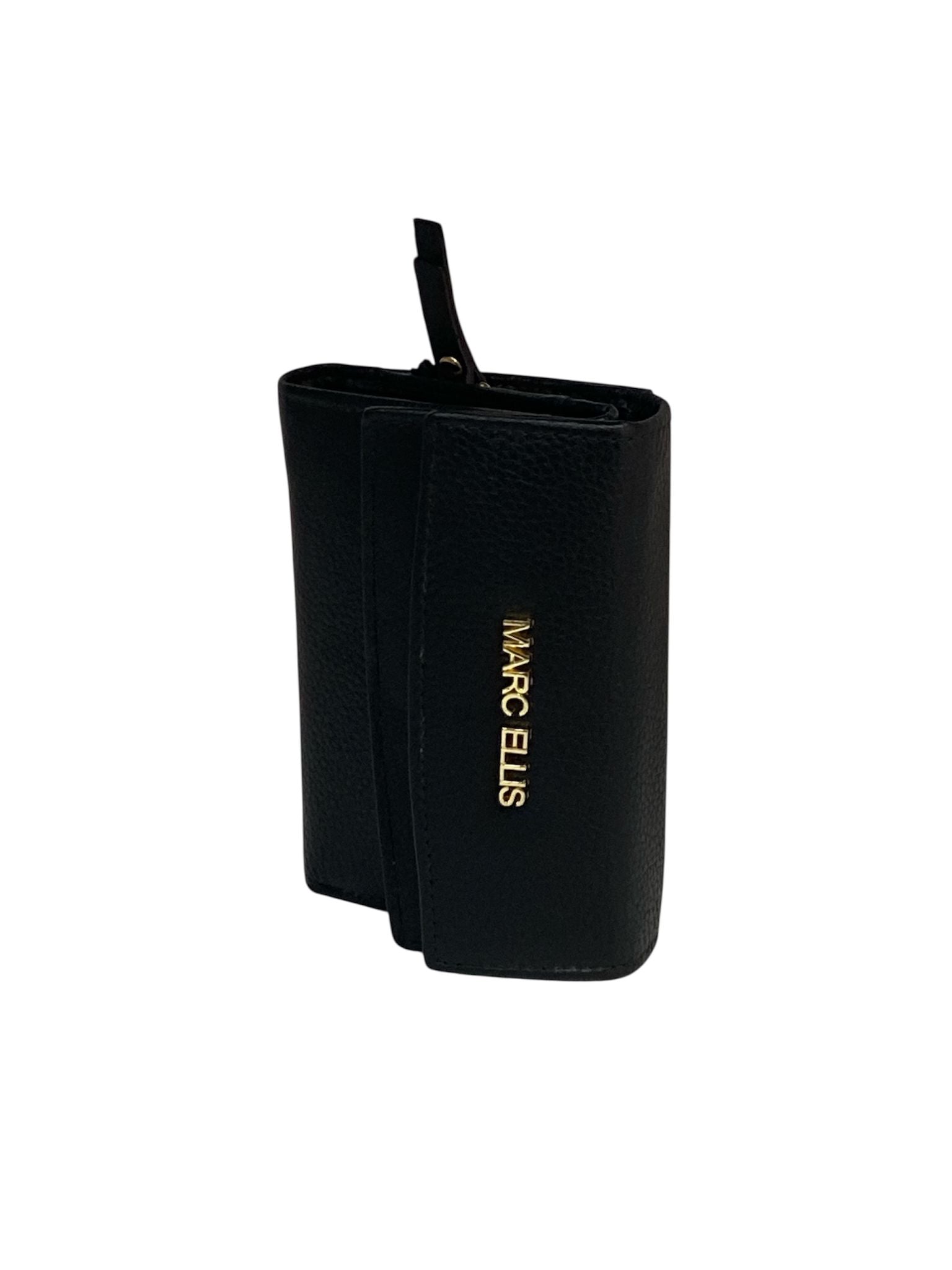 Portafoglio marc ellis in pelle nero forma compatta pieghevole.