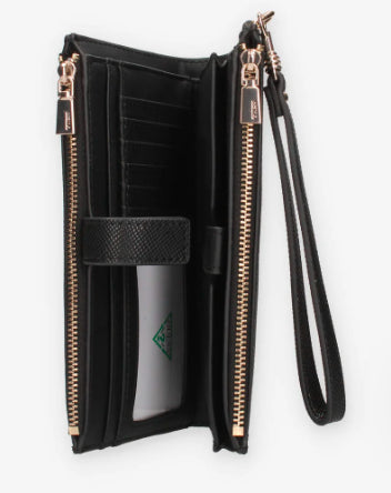 - permette di tenere tutto ben organizzato : carte , documento d'identità , monetine , banconote , e scontrini ognuno al suo posto, grazie agli slot , alla tasca ID e alle zip laterali.