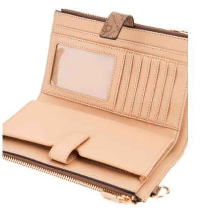 Scopri l'organizer che fa sul serio, pensato per chi vuole eleganza, ordine e praticità in un unico accessorio sofisticato: questo portafoglio Guess? è un concentrato di raffinatezza, la finitura in eco-pelle con stampa del logo su tutta la superficie e i dettagli dorati catturano lo sguardo, mentre la doppia zip laterale e l'ampia capacità lo rendono estremamente funzionale.